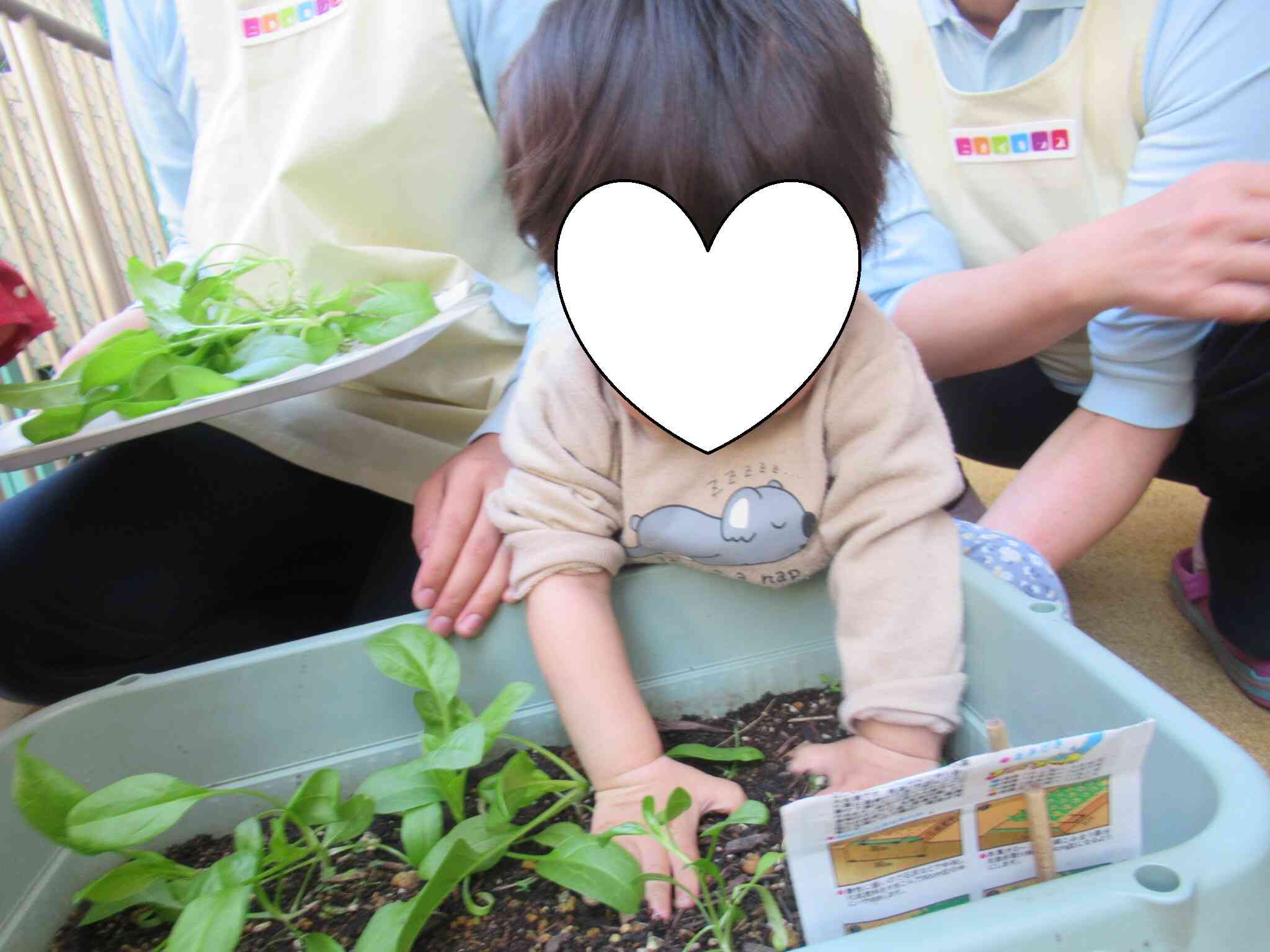 うさぎ組のお友だちが頑張ってお世話したほうれん草が大きくなりました♪
