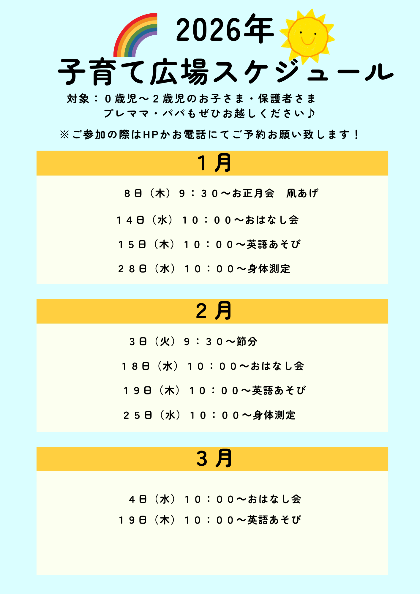 ・対象年齢:0歳児~2歳児のお子様・保護者様、プレママ・パパ