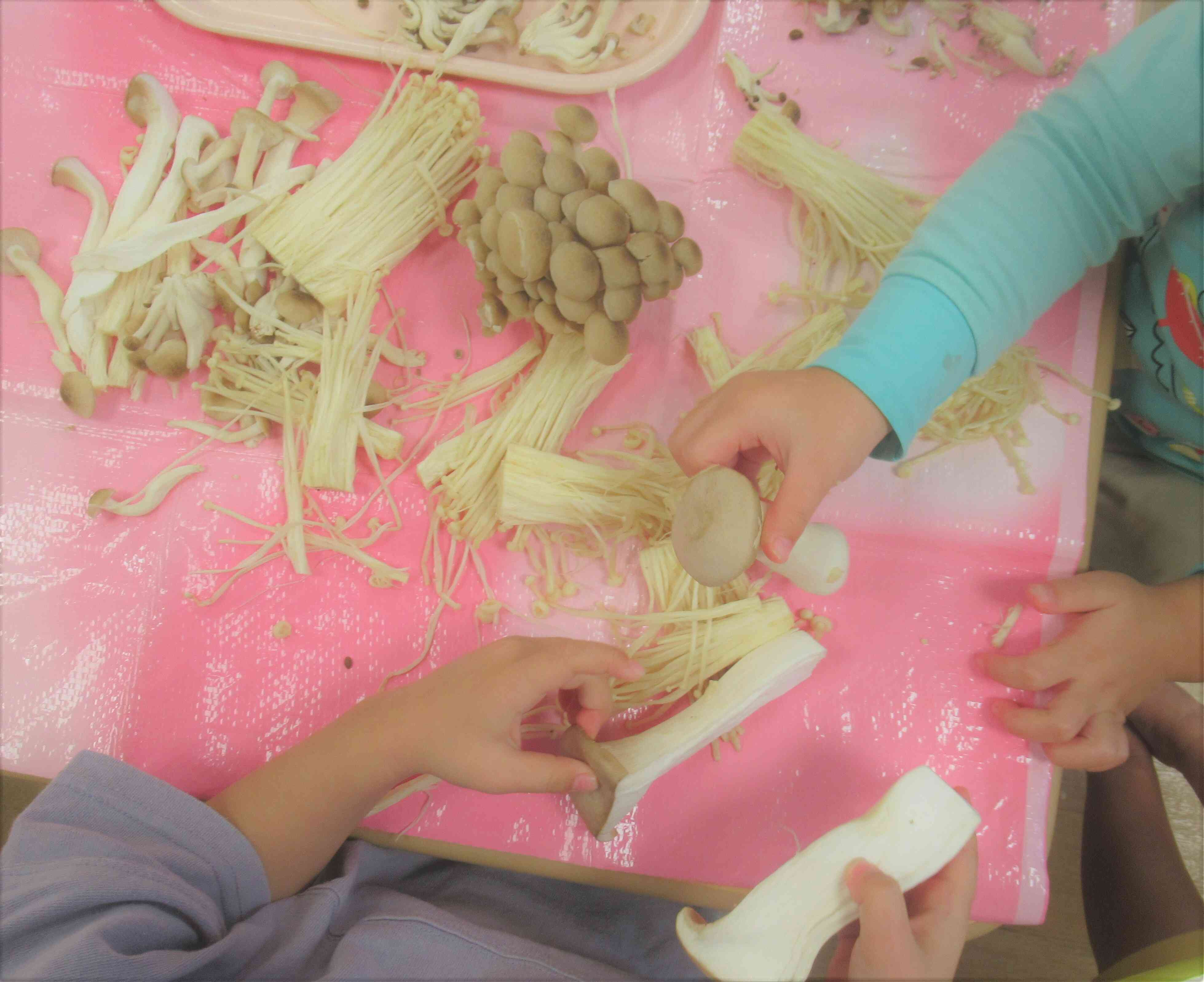 今回は、しめじ・えのき・エリンギの3種類のきのこに触れてもらいました!