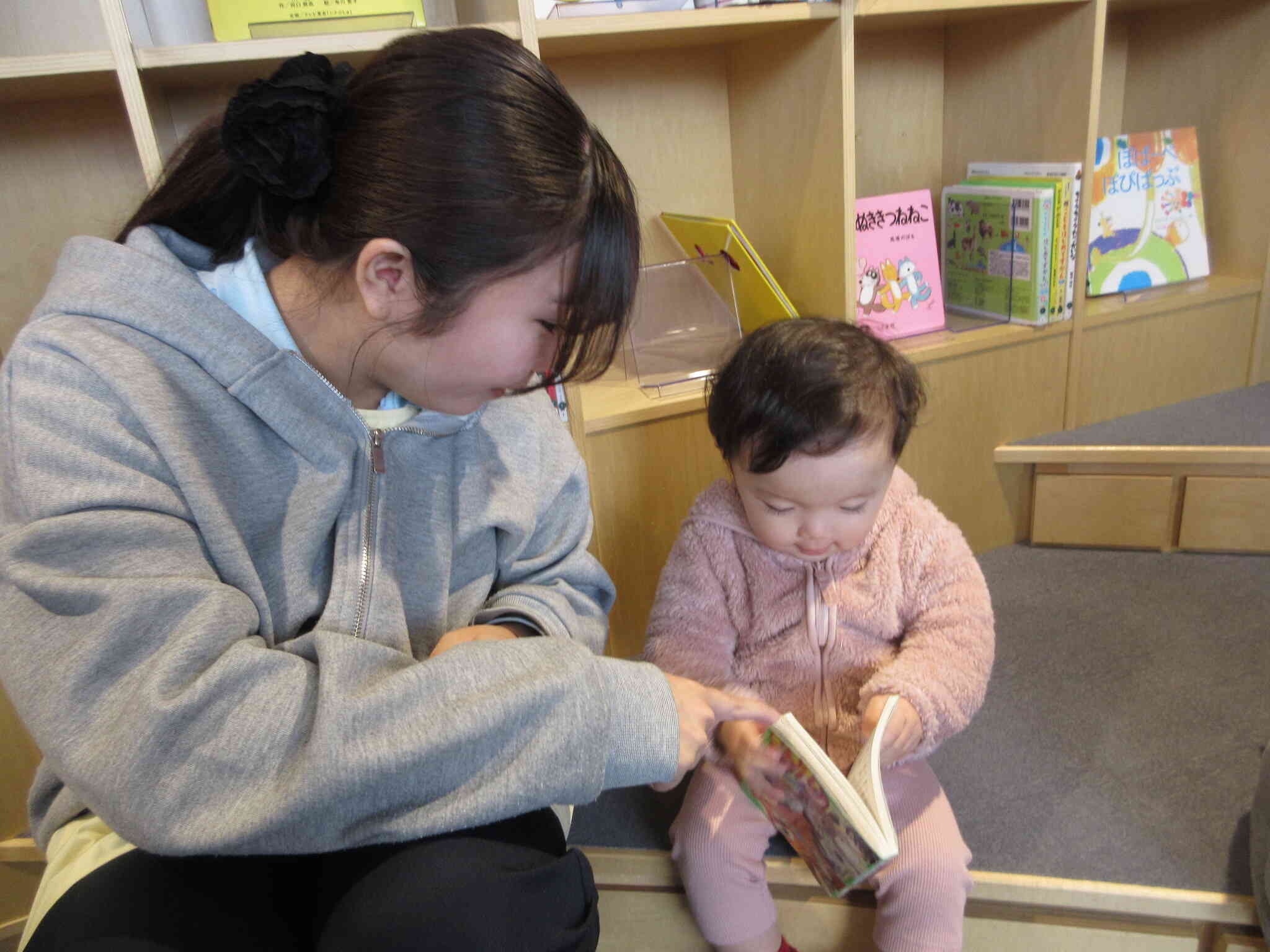 あひる組(1歳児)のお友達は、早速気になる本を見つけたようです♪