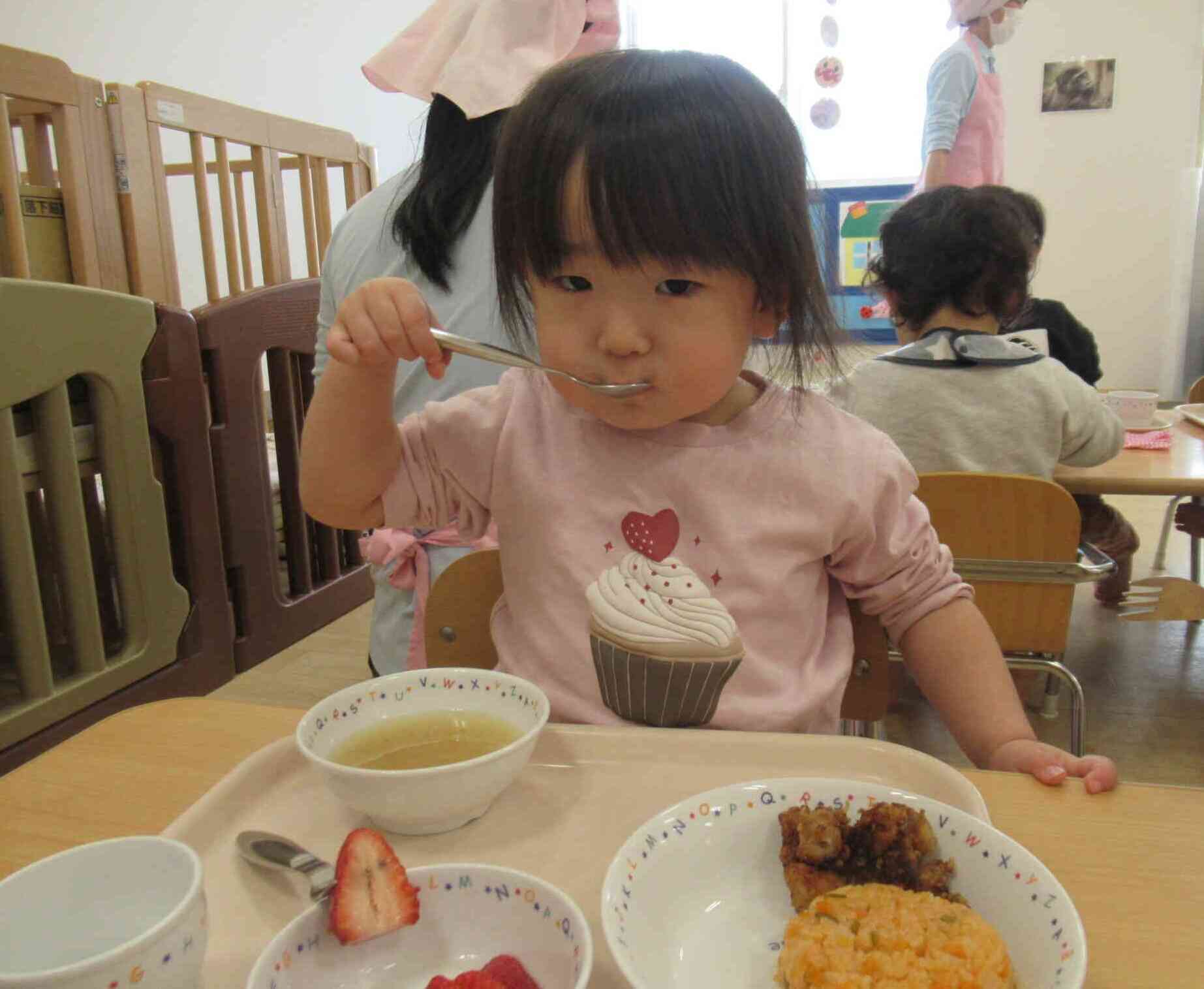 特別なワンプレート給食を見て「わぁ!おいしそう♡」と喜んでくれました。