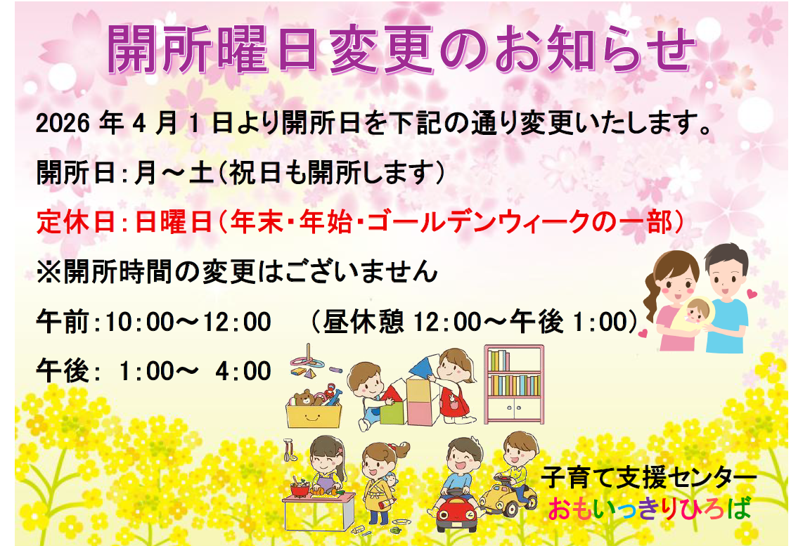 10:00~12:00 13:00~16:00 (日曜日、年末年始、ゴールデンウィークの一部を除く)