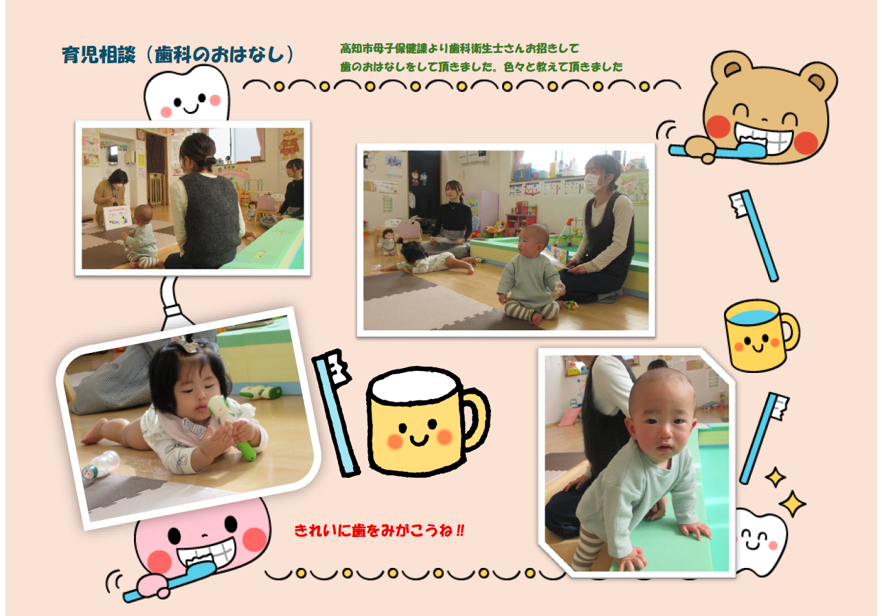 高知市から歯科衛生士さんをお招きして「歯のおはなし」をしていただきました。気になることもお聞きして、歯の大切さ学びましたよ。
