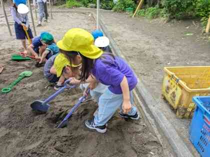 楽しい遊具やお砂場もある幼稚園の園庭にみんなワクワク、大興奮です!