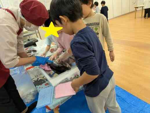 最初はおっかなびっくり、目を逸らせているお友だちも多くいましたが、解体が進むにつれ、じっくりと観察できるお友だちも増えました。