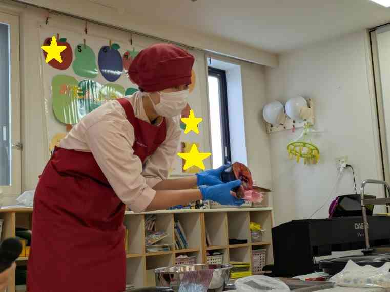 先日の「さんま」の食育から繋げて子どもたちの食卓にもとても馴染み深い「鮭」の食育を行いました。