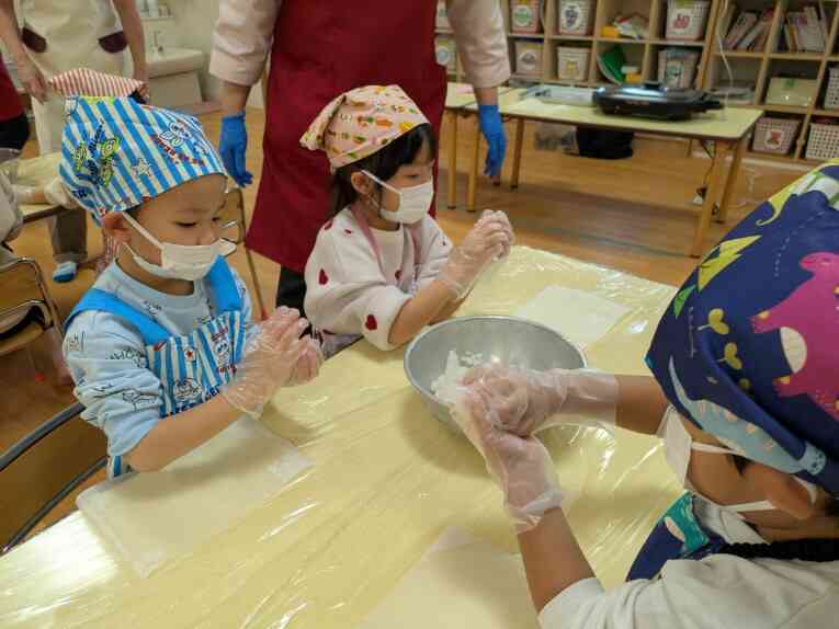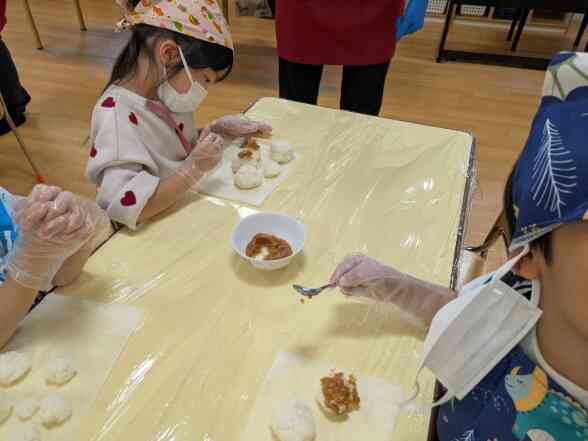 大きなおにぎりにするお友だち、小さなおにぎりをたくさん作るお友だちと、皆思い思い自由に作っていきます。