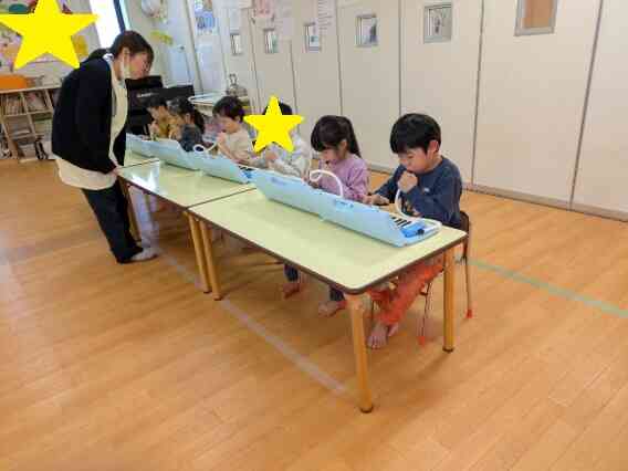 ぞう組(5歳児)のお友だちは、リトミックで鍵盤ハーモニカに取り組んできました。