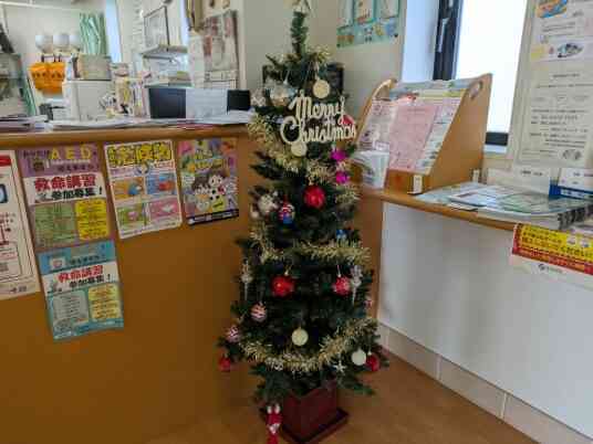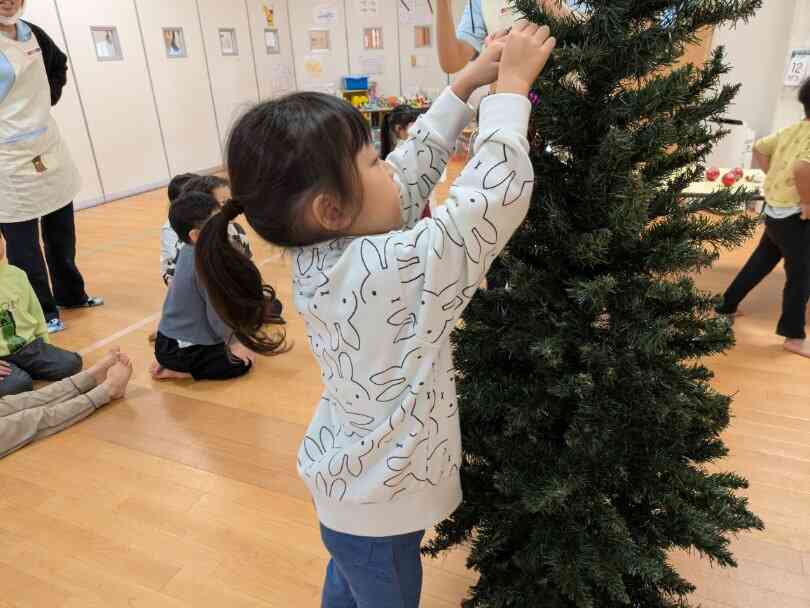 みんなの協力で素敵なクリスマスツリーの出来上がり。
