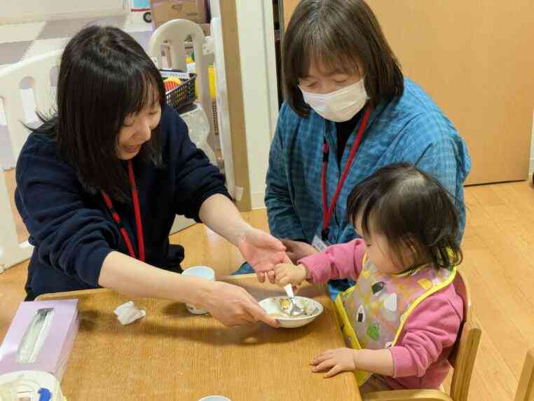 0.1歳児クラスでは、参加型で保護者の方に子どもたちの側についていただき、おやつの様子を見てもらったり一緒に帰りの会に参加していただきました。