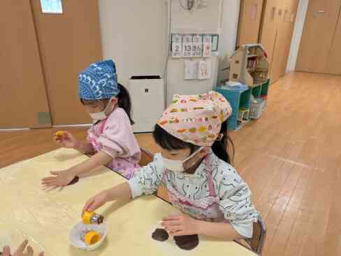 給食の先生がおやつの時間に焼いてくれるので、焼き上がりがとっても楽しみです。