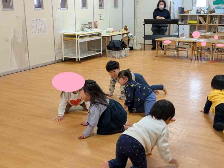 今日はりす組(1歳児)うさぎ組(2歳児)一緒にリトミックに参加しました。