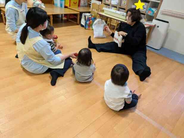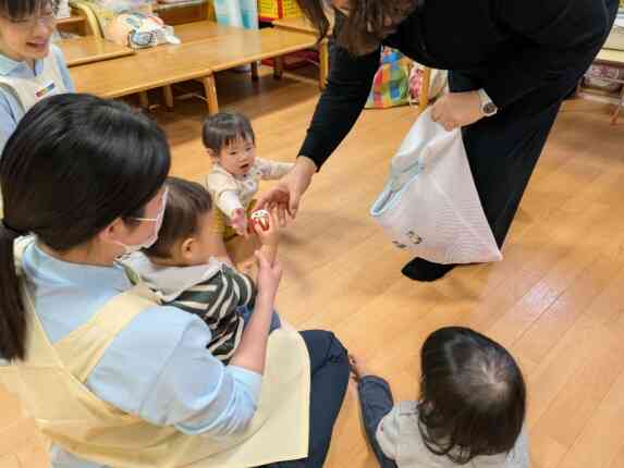 「どうぞ~」「ありがとう」のやり取りをお歌でやっています。楽しそうな子どもたちです!