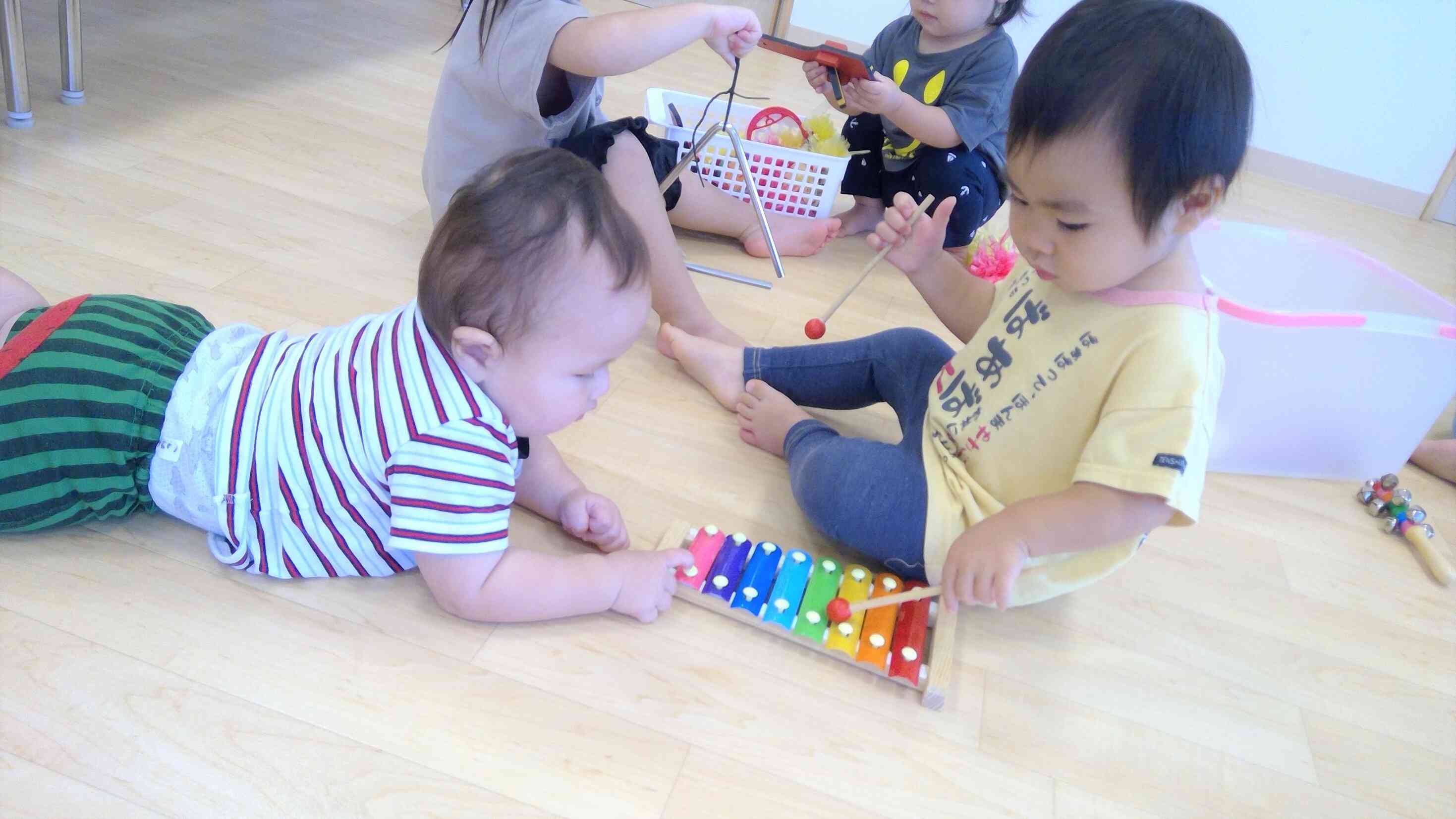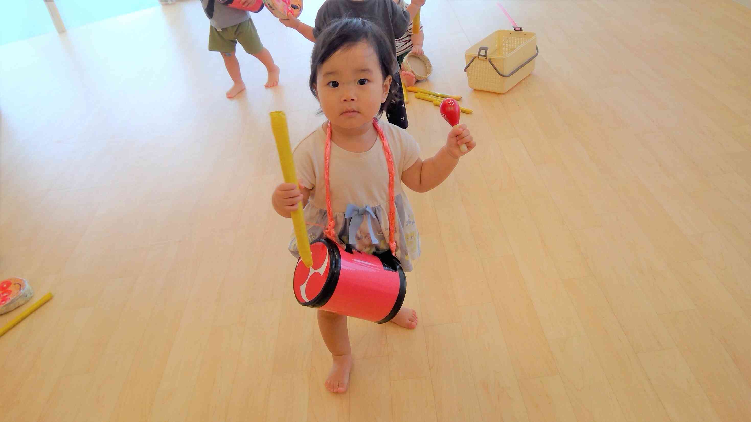 カスタネットや太鼓、マラカスなど、たくさんの楽器に触れて遊びました。