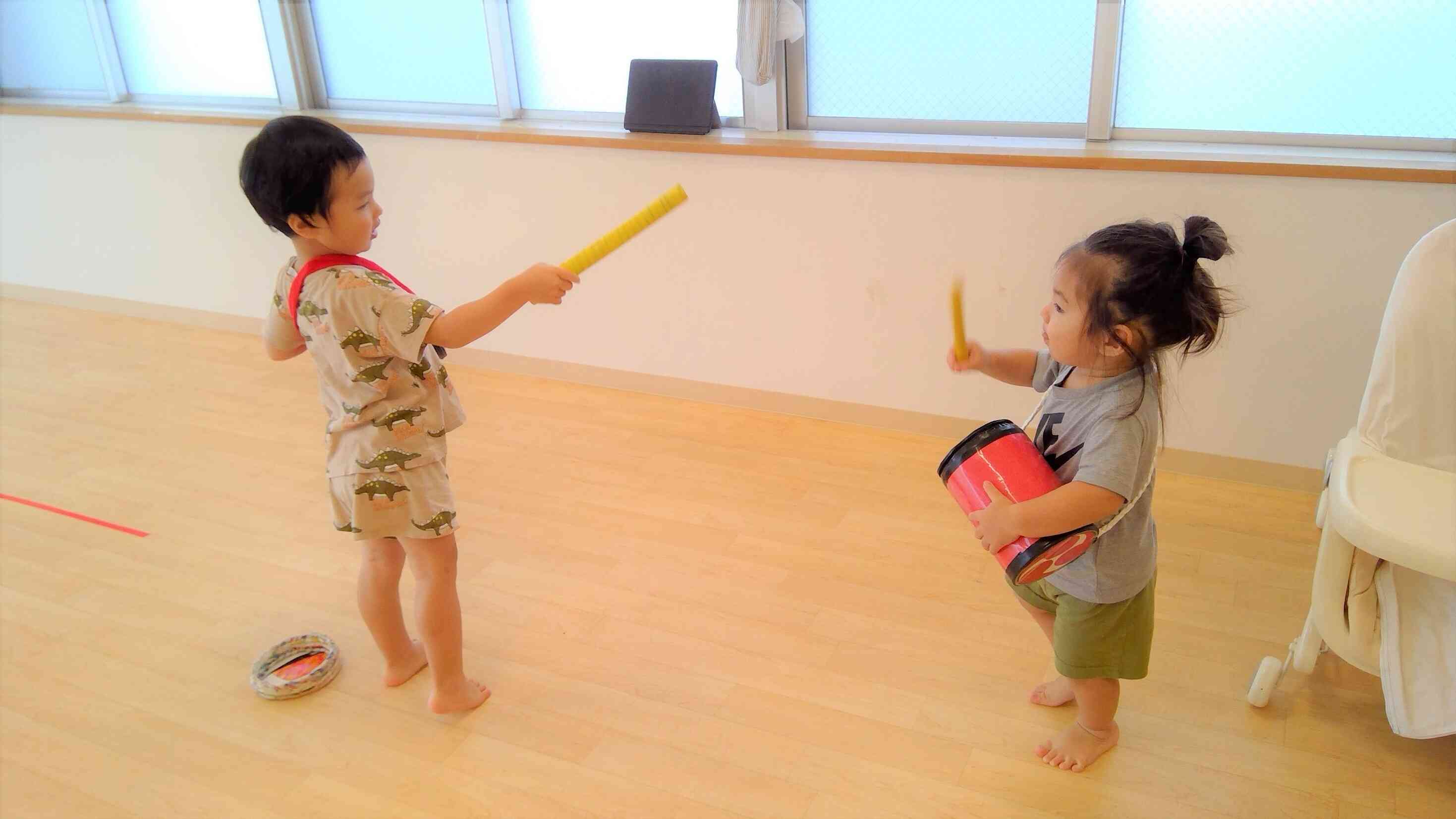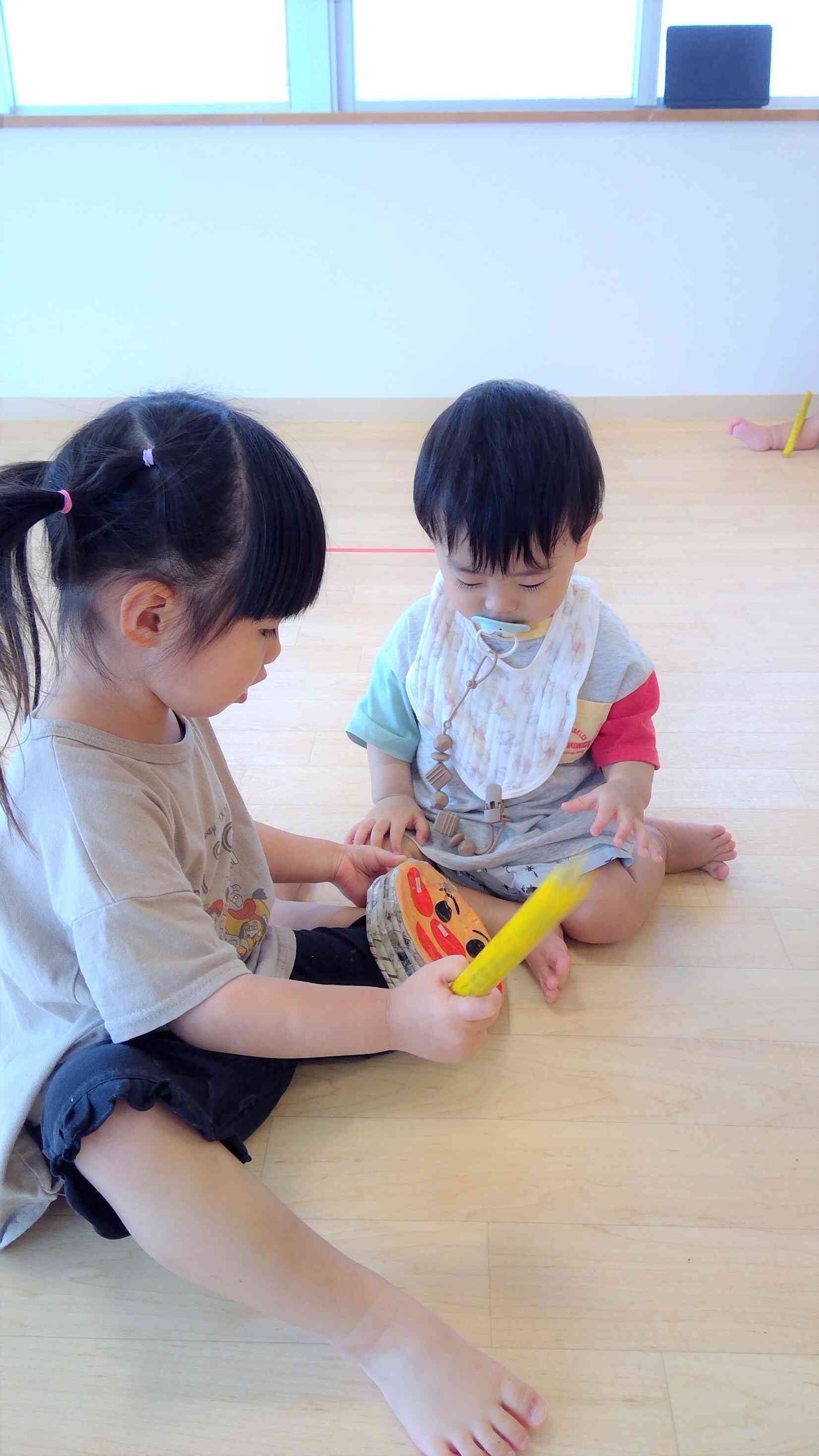 みんなで先生のリズムに合わせて「トントン♪シャカシャカ♪」と音を出す練習をしましたよ!