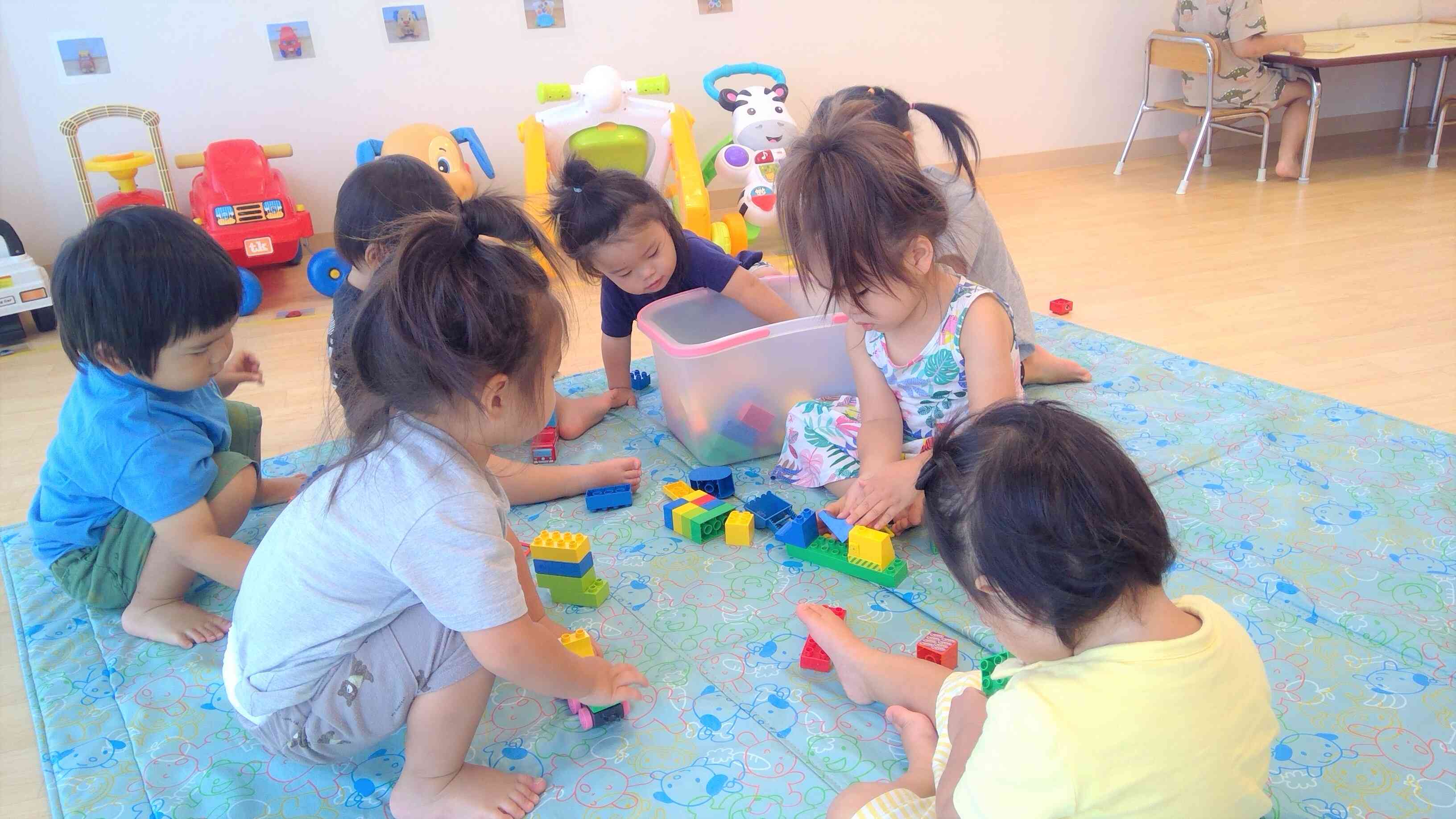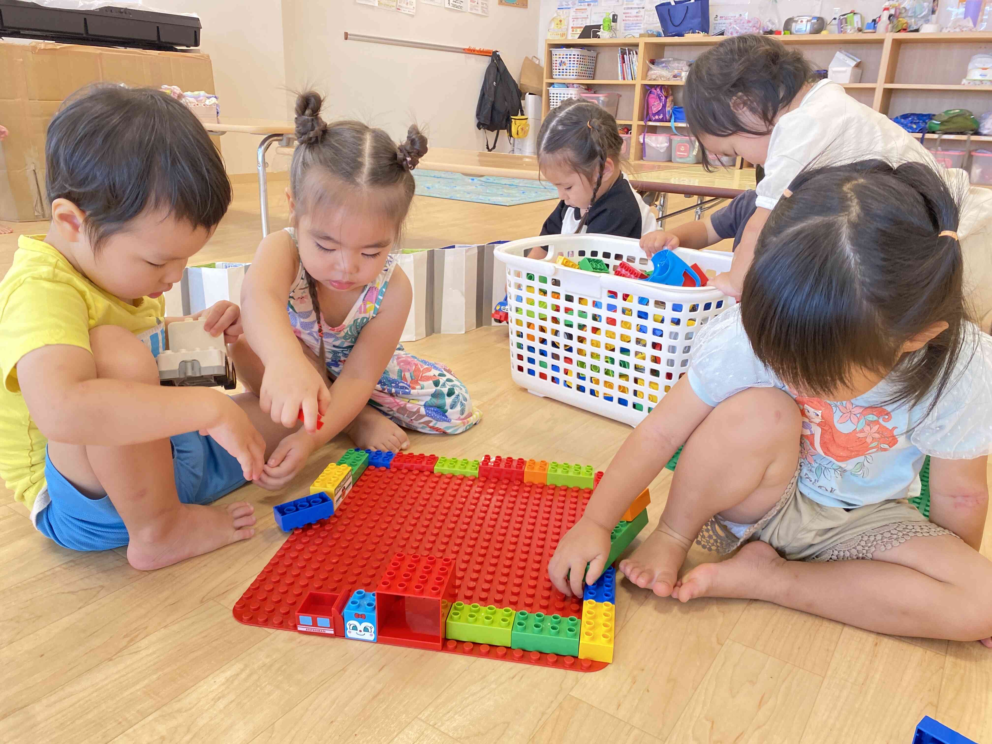 お部屋の中では、子どもたちがままごと遊びやブロック遊びを楽しんでいました♪