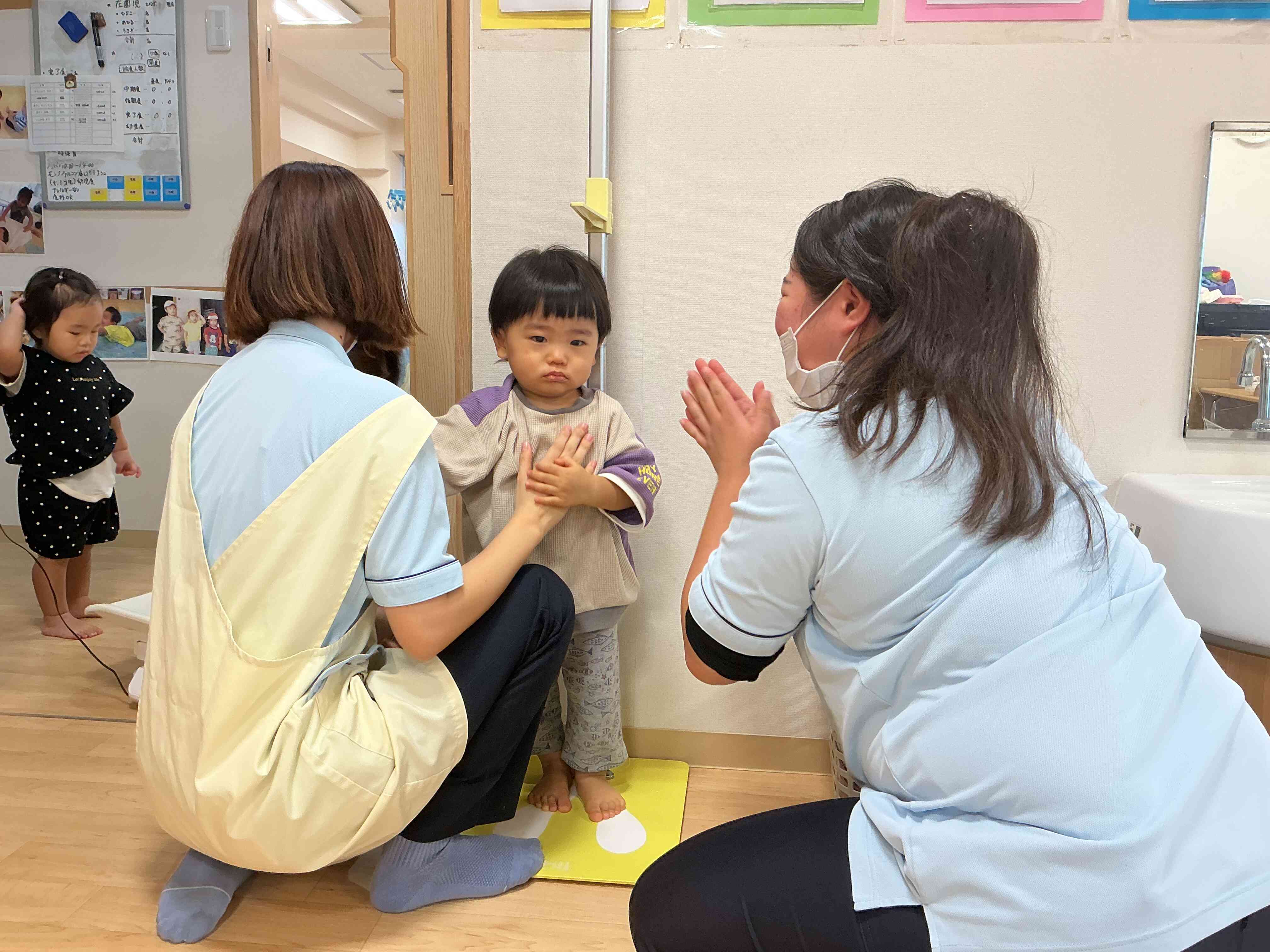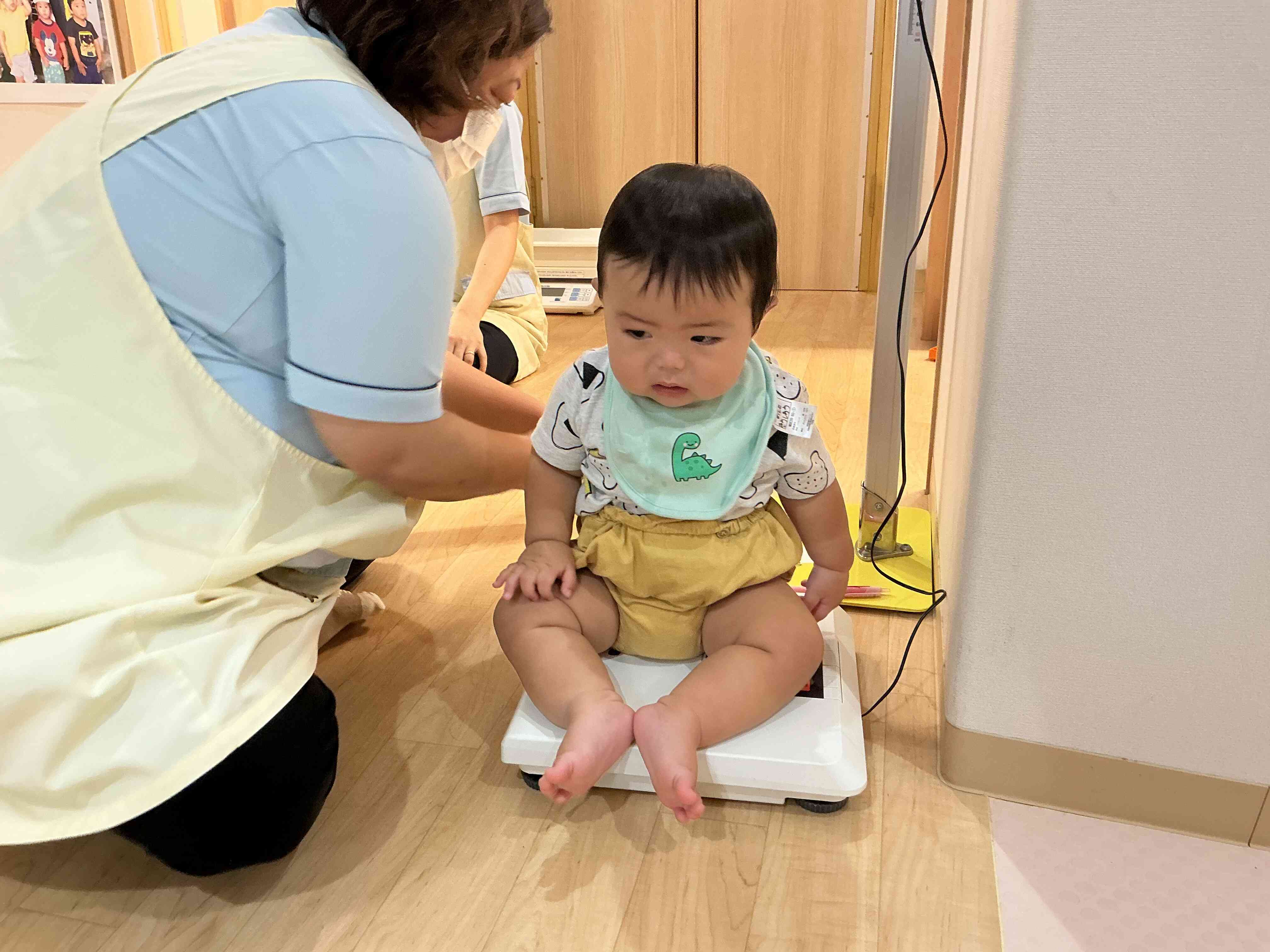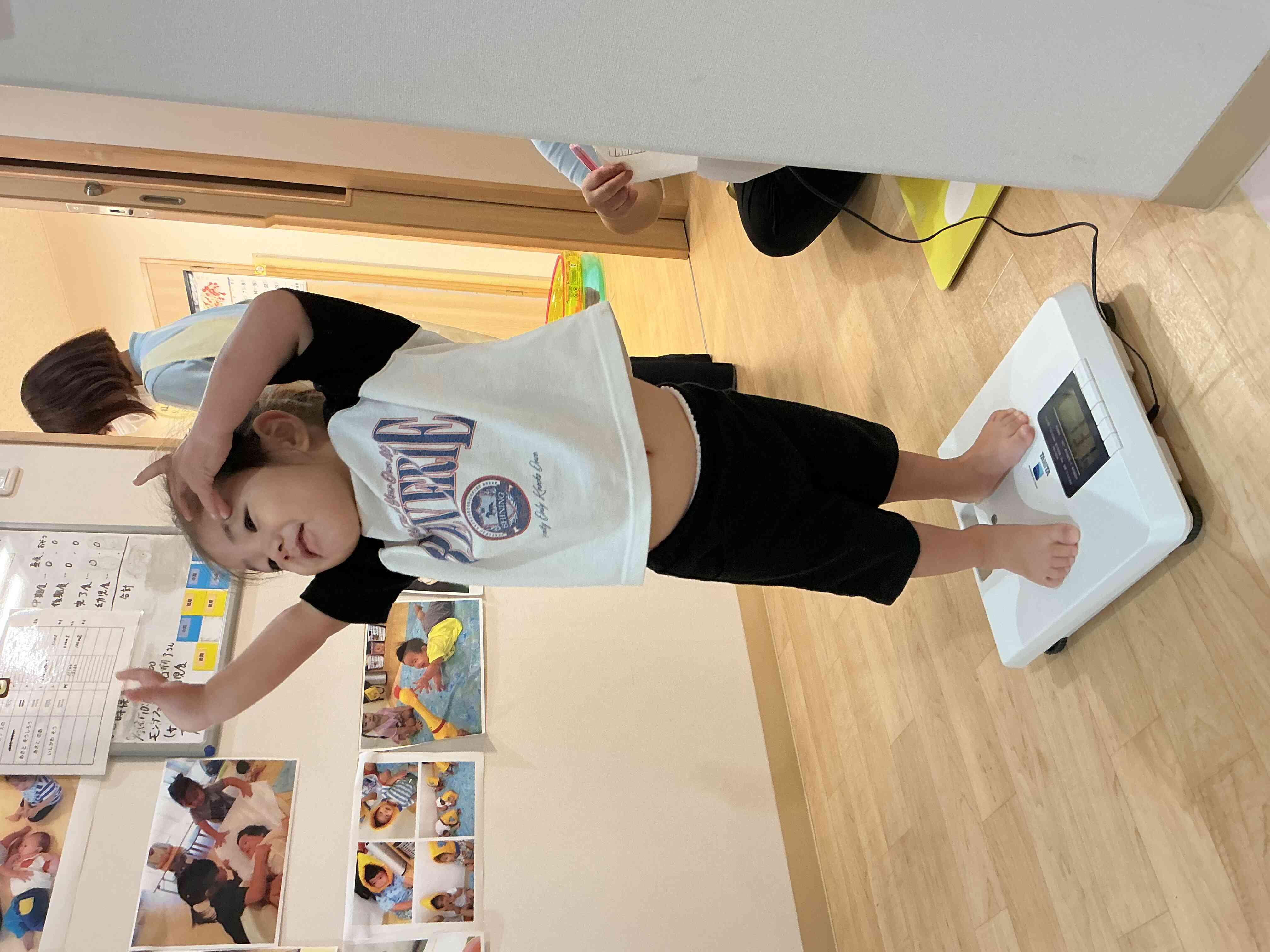 保育士さんの手遊びを見ながら、落ち着いて測定できたねっ