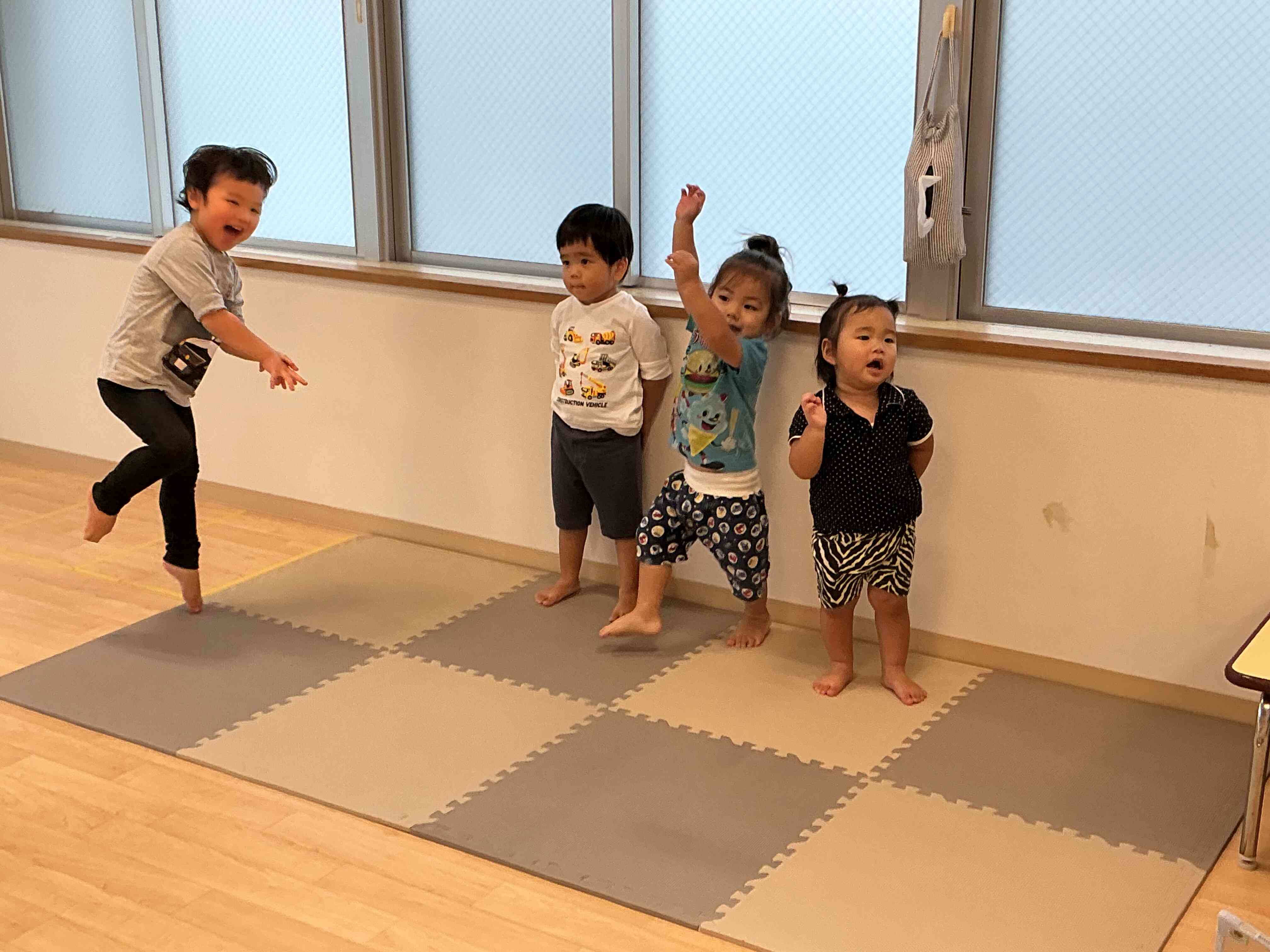 先生の真似して、飛んだり、回ったり、大はしゃぎの子どもたちでした♪