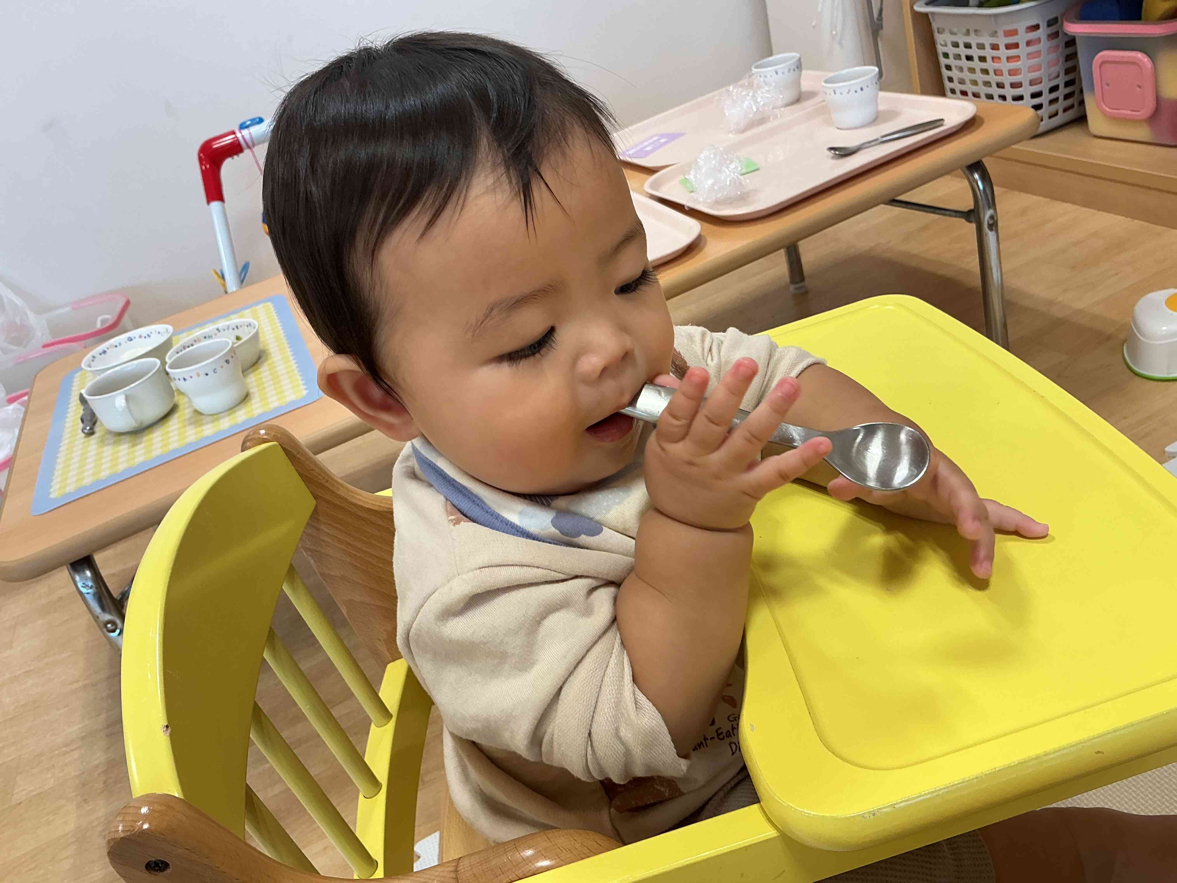 スプーンをにぎって、ゆっくりもぐもぐ。