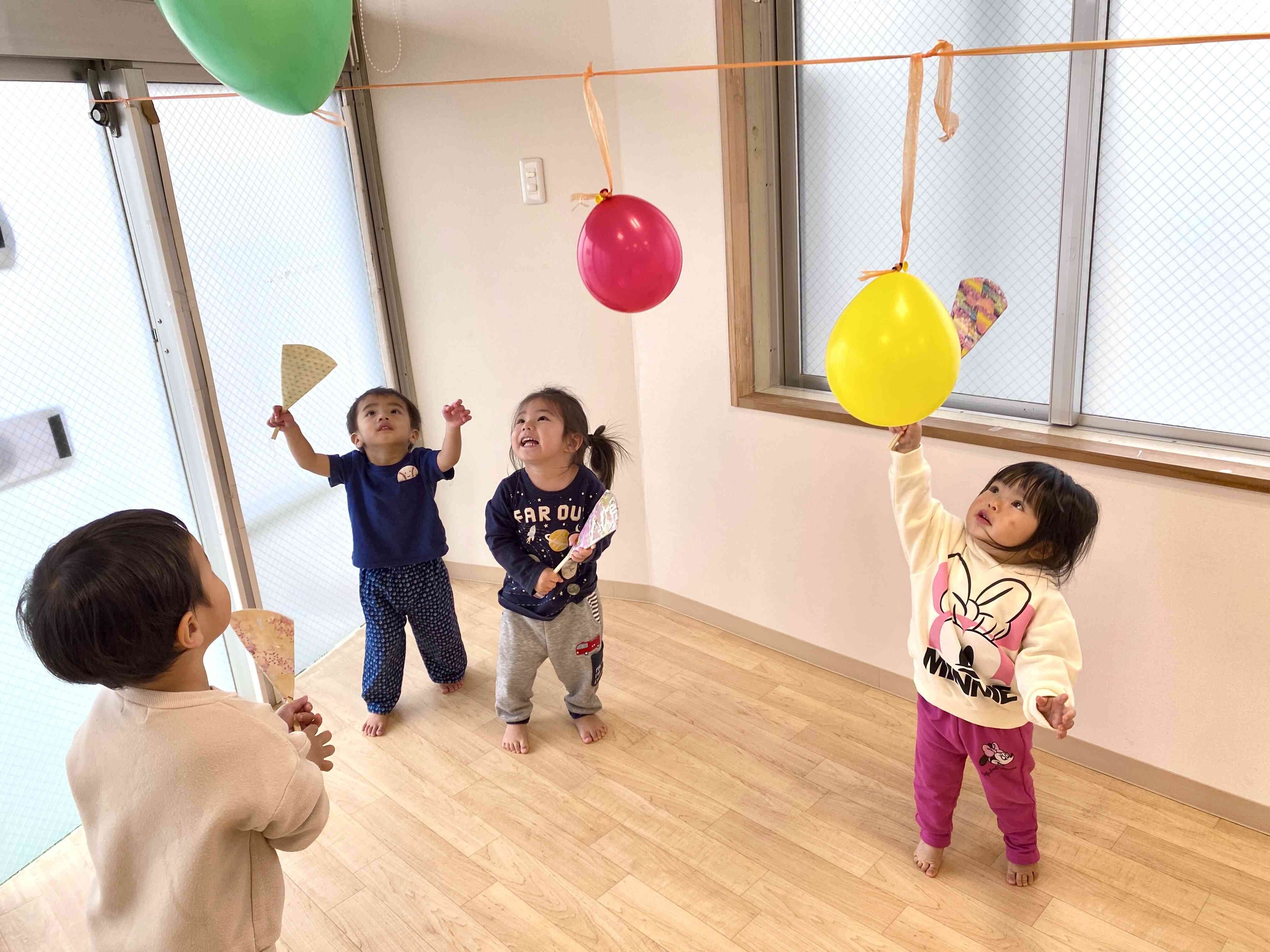 みんなで飛び跳ねながら、体を使って遊ぶ姿は元気いっぱい!