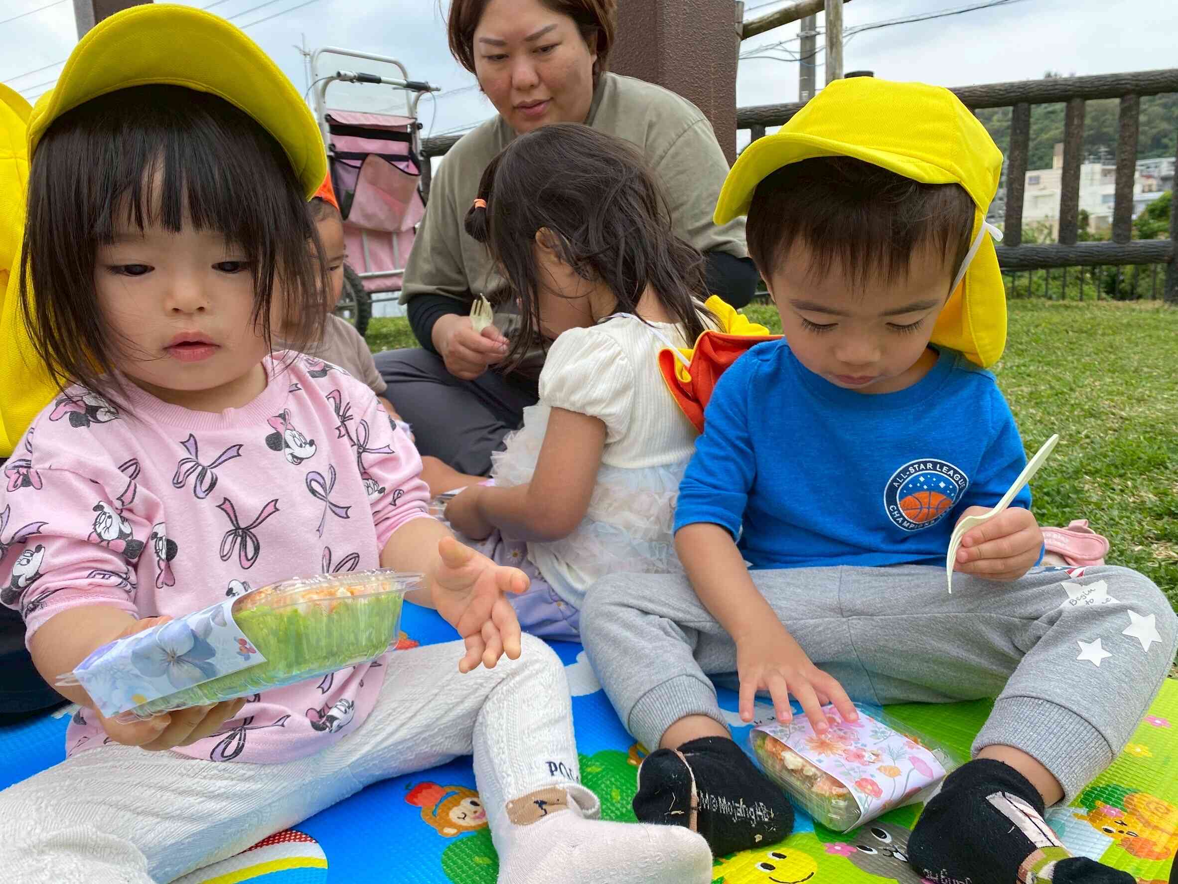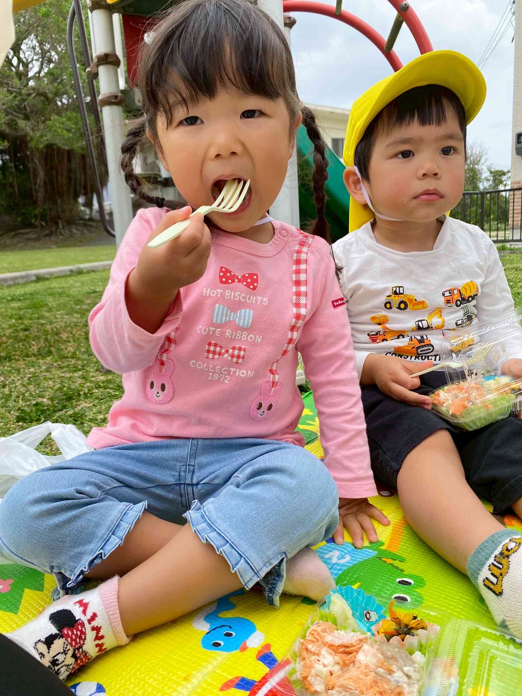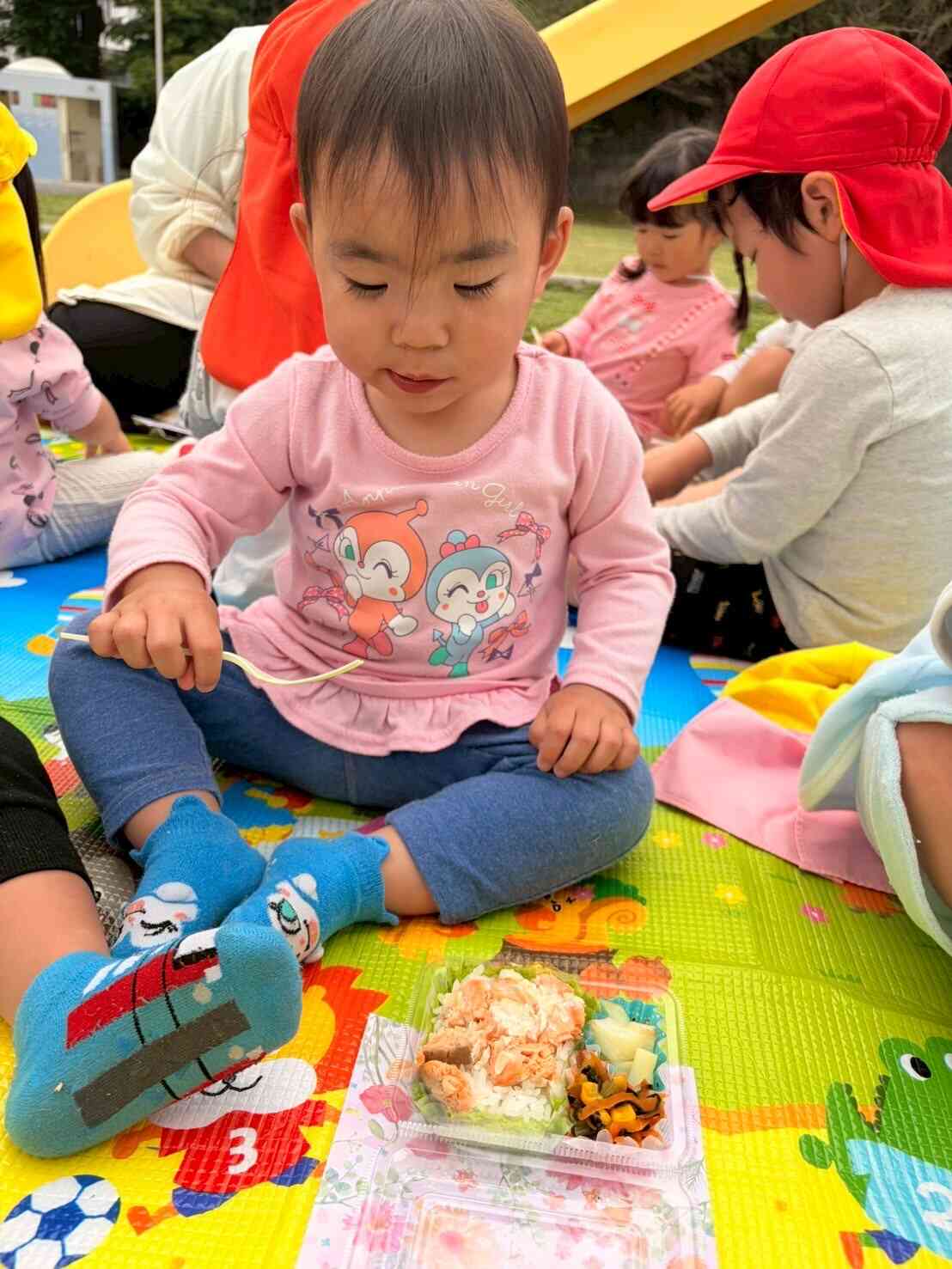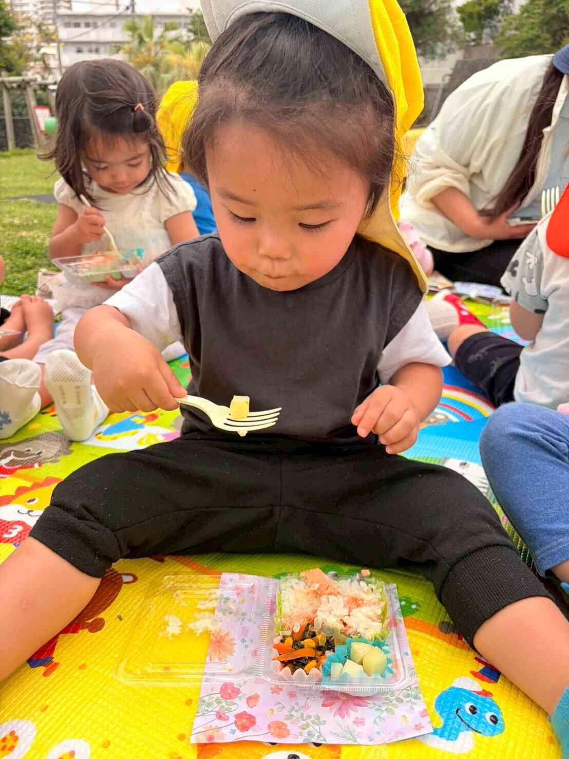 みんなで食べるお弁当は特別で、「おいしいねっ!」とうれしそうにパクパク食べる子どもたちでした♪