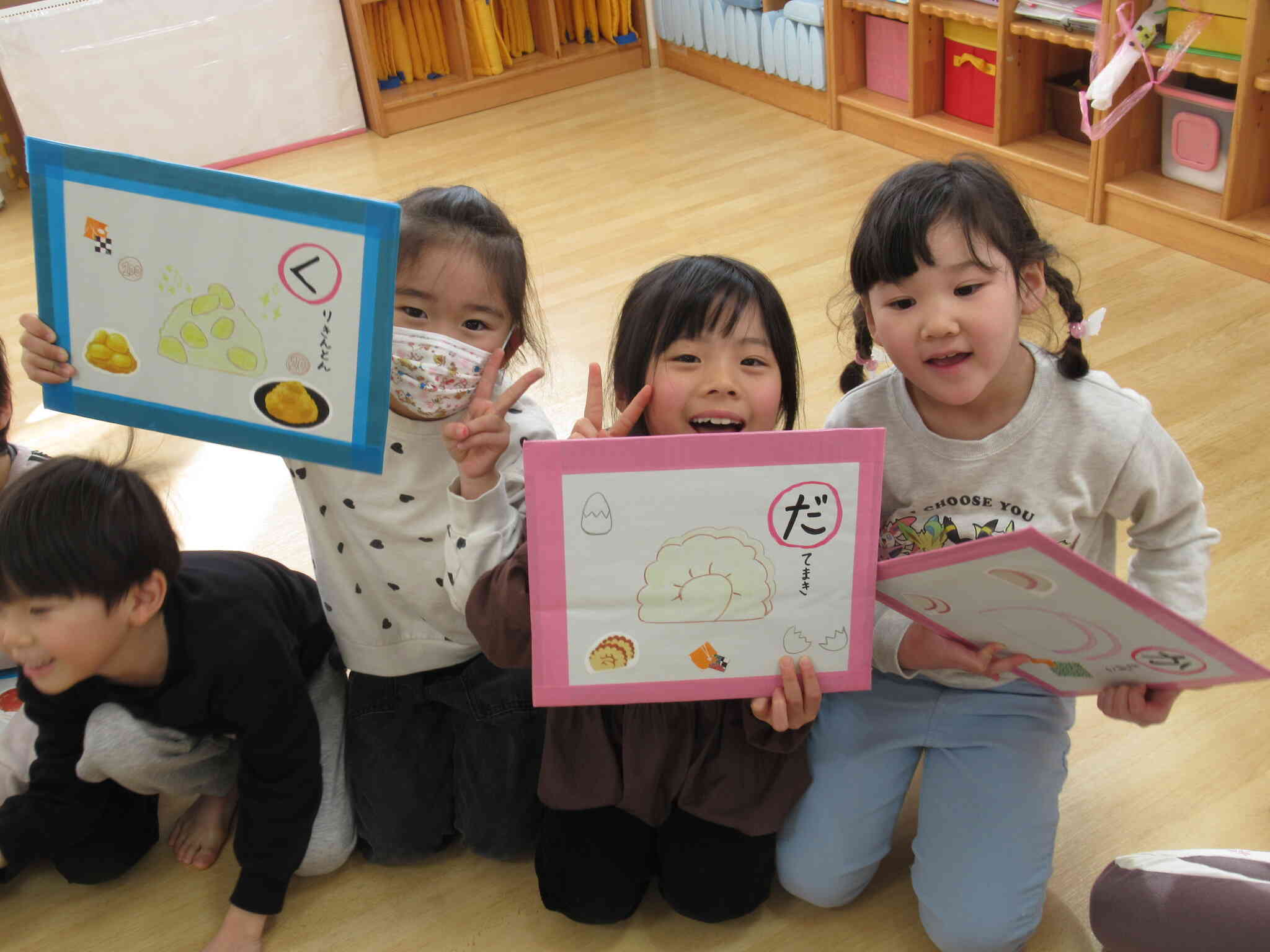 きりん組(5歳児)は給食の先生手作りのおせちかるたで盛り上がっていましたよ。