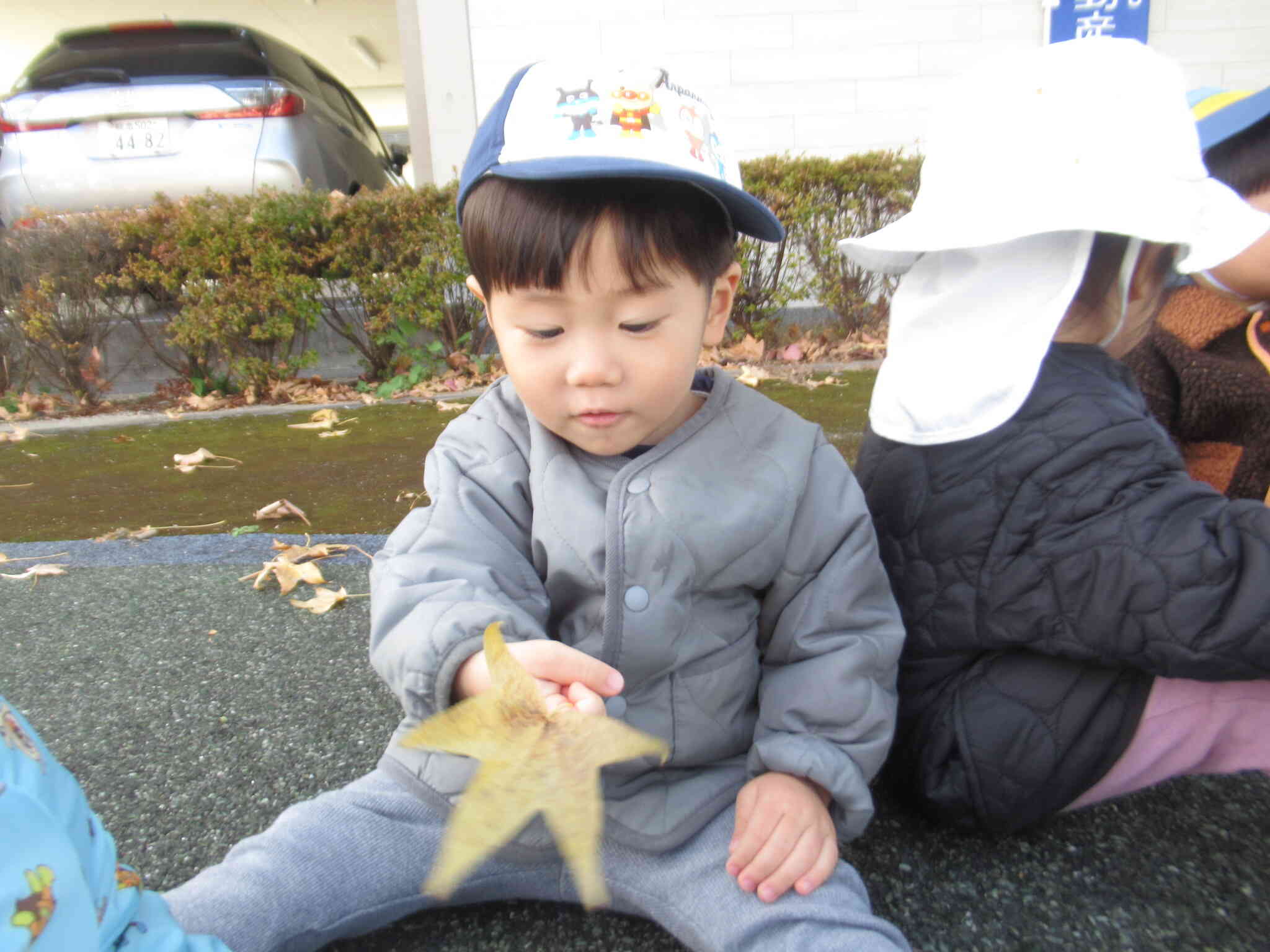おててみたいな落ち葉と自分の手を見比べるお友だちもいました。