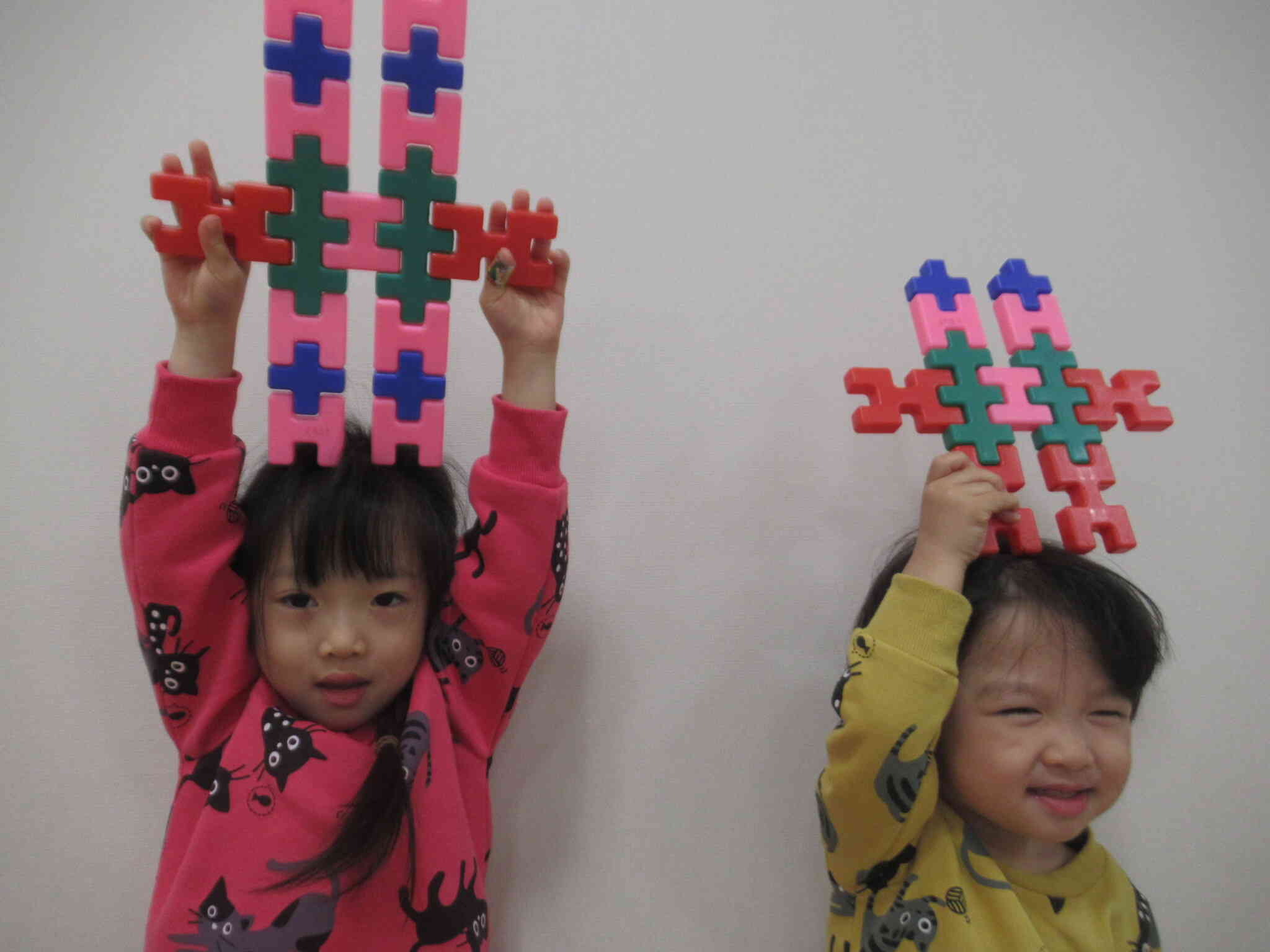 ブロックで鬼さんの角を作ったようです。