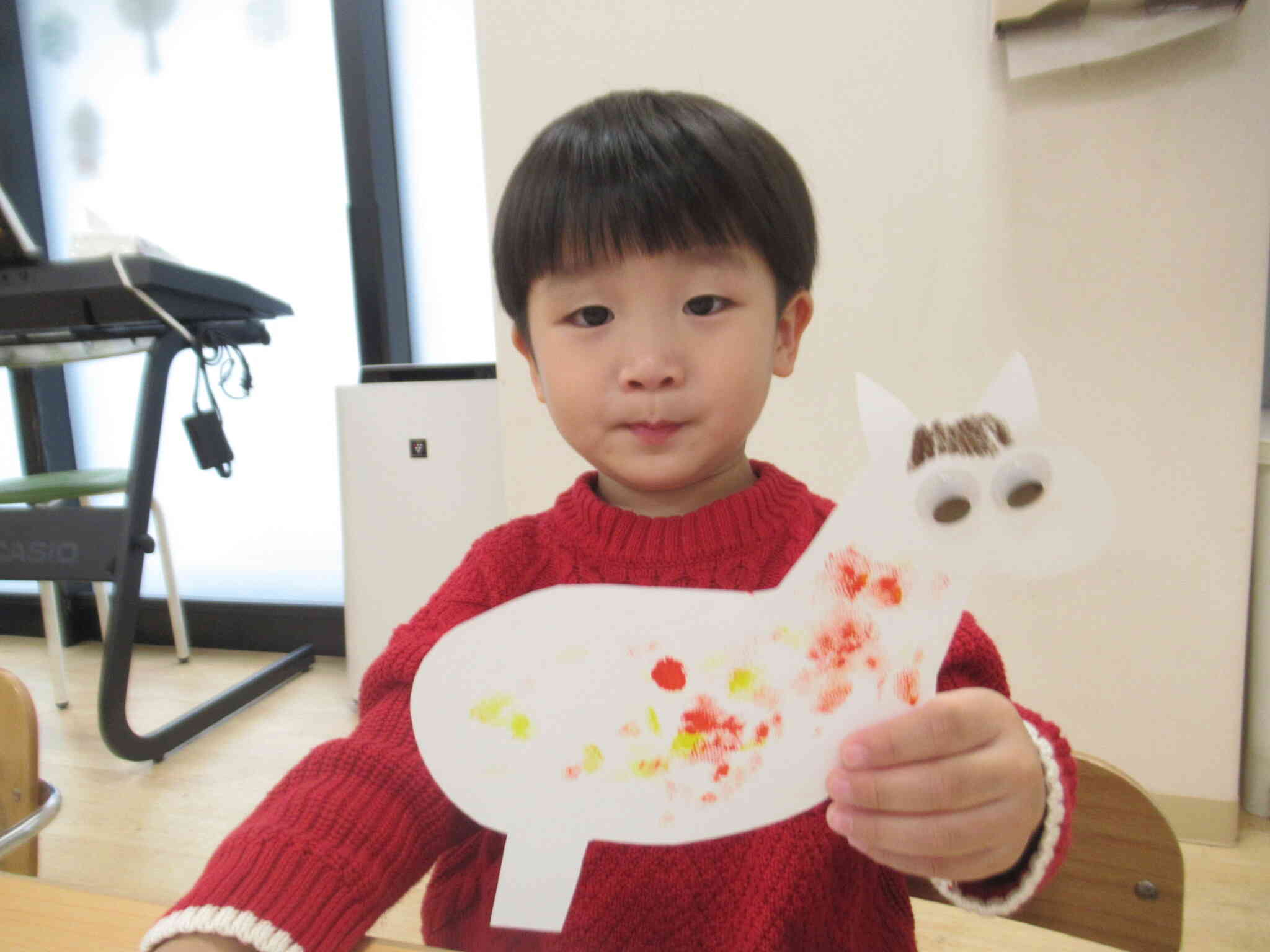 2026年の干支は「馬」なので、たんぽを使って馬に模様をつけました。