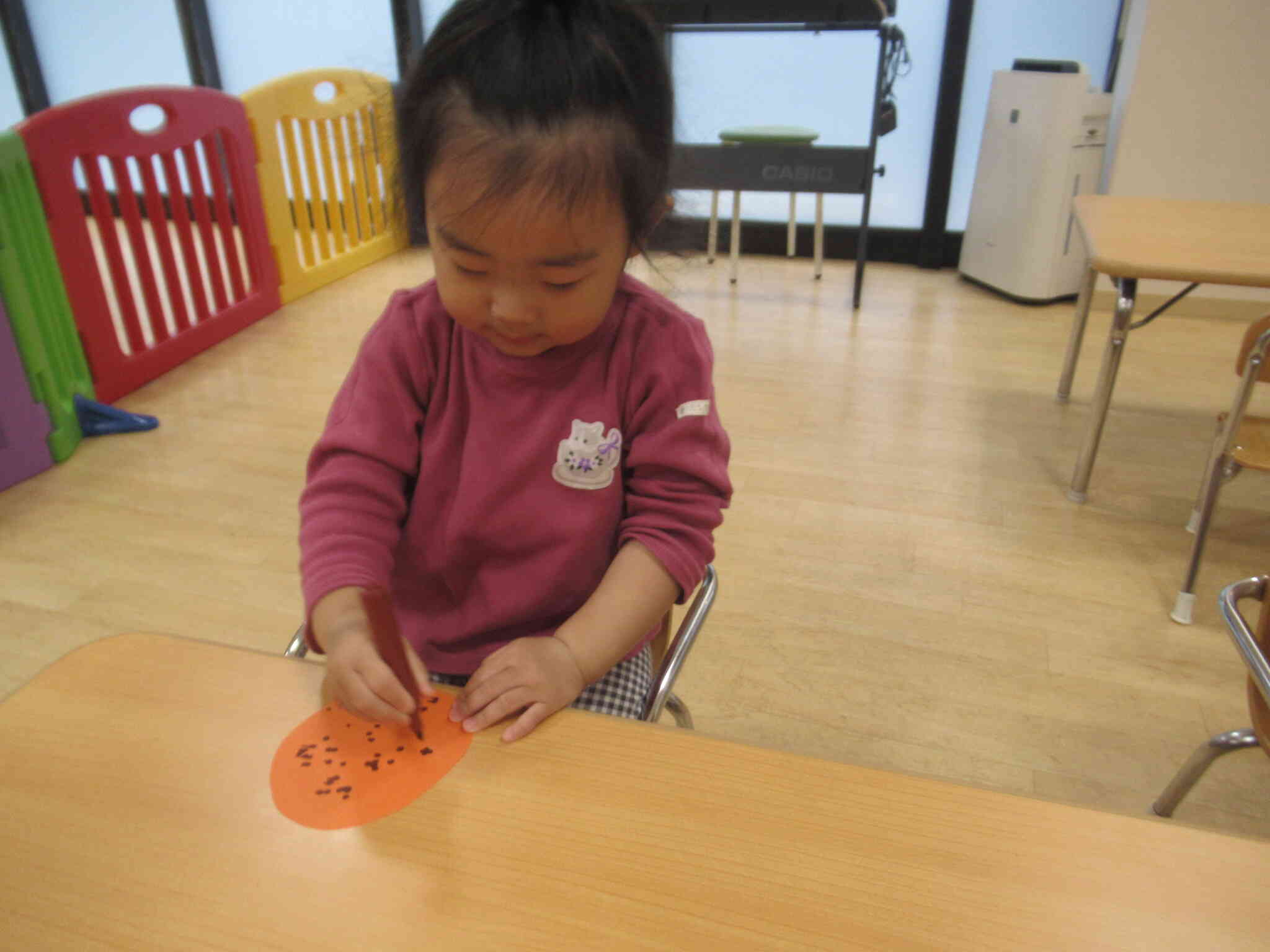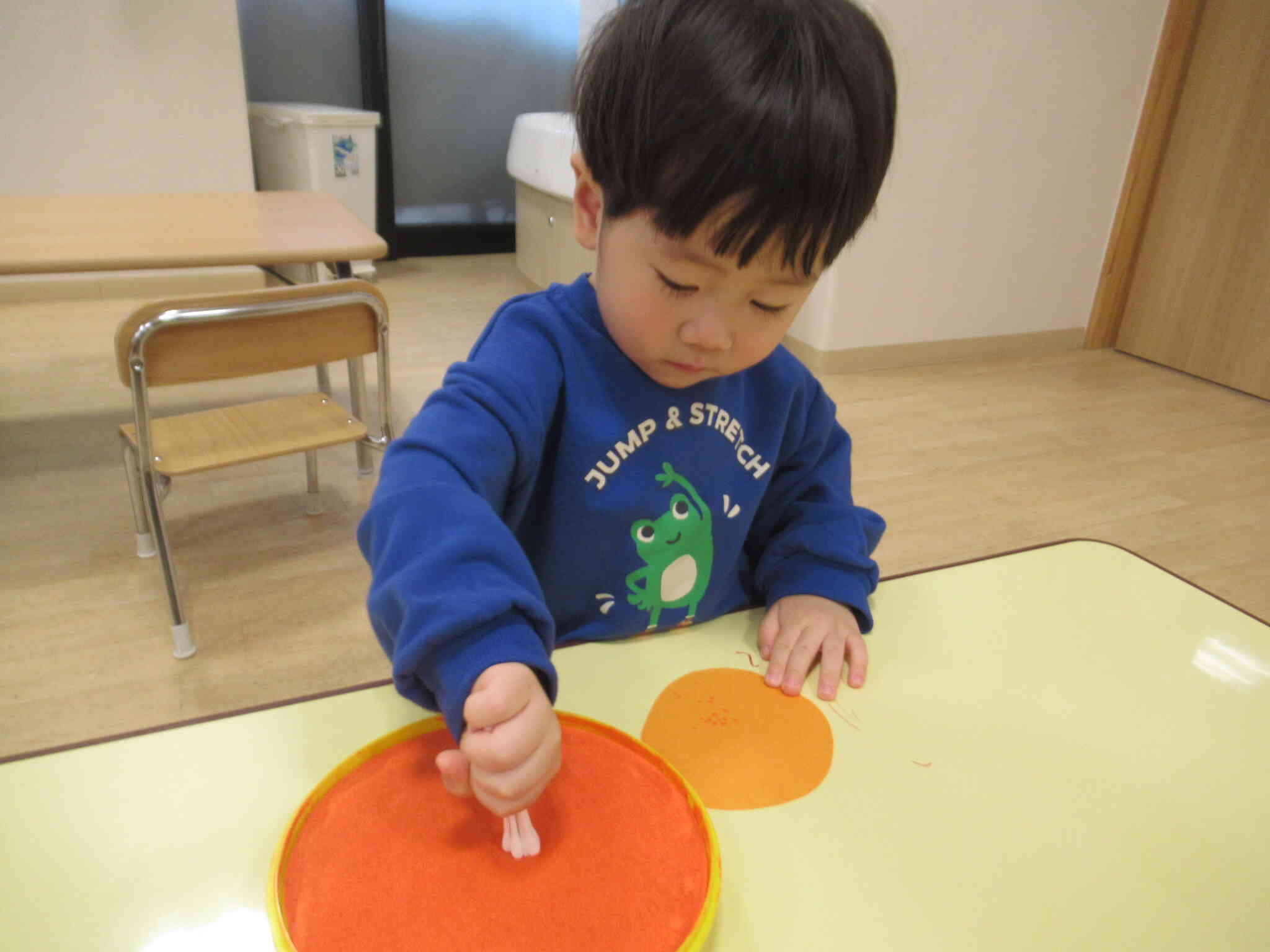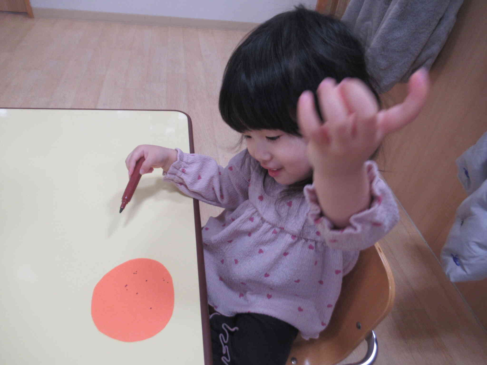 スタンプをするたびにみかんについた点々を見て「おっ!」と言う女の子でした。