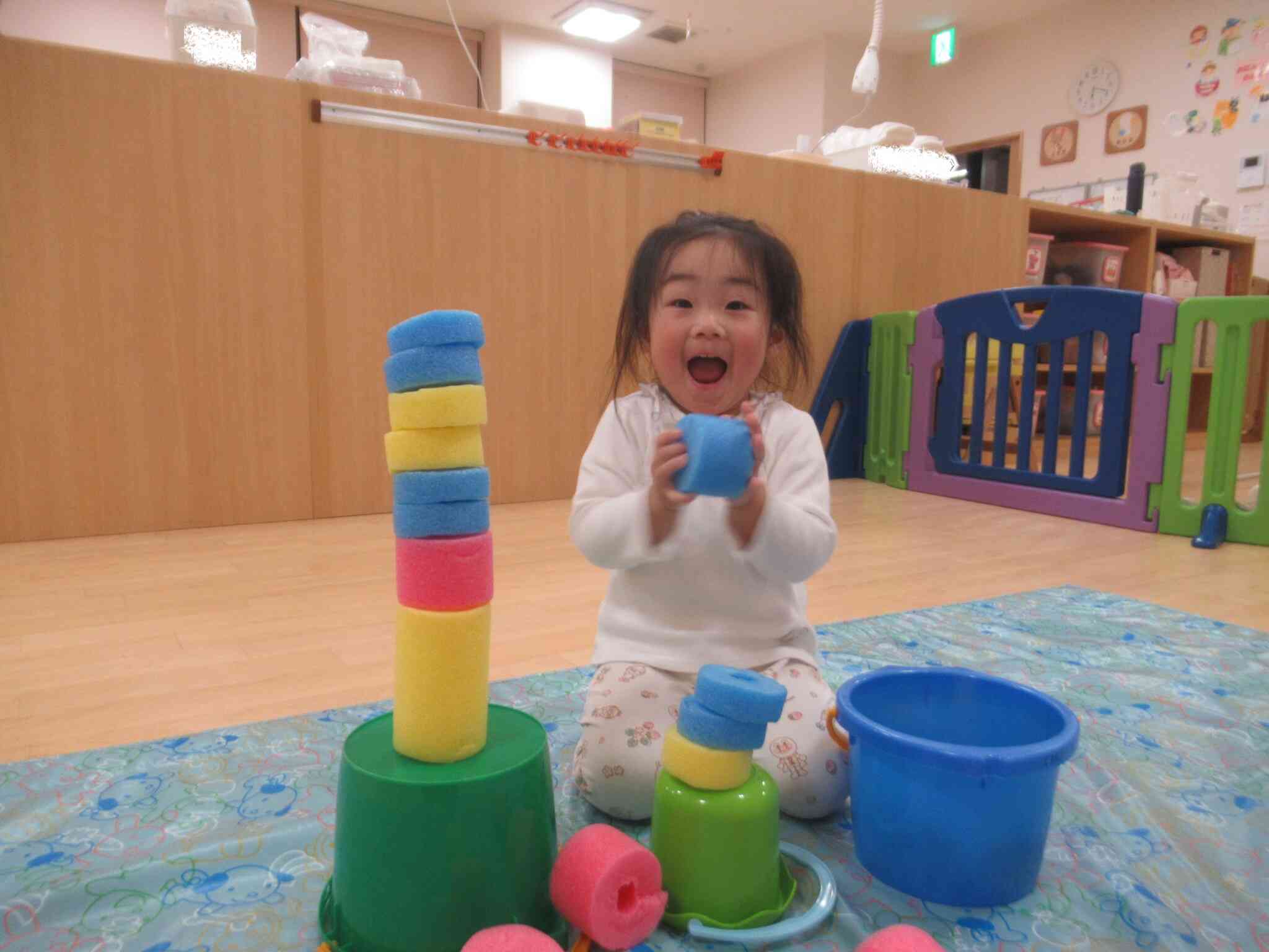 一つ積むことができると「やった!!」と得意気なお顔をしていました。