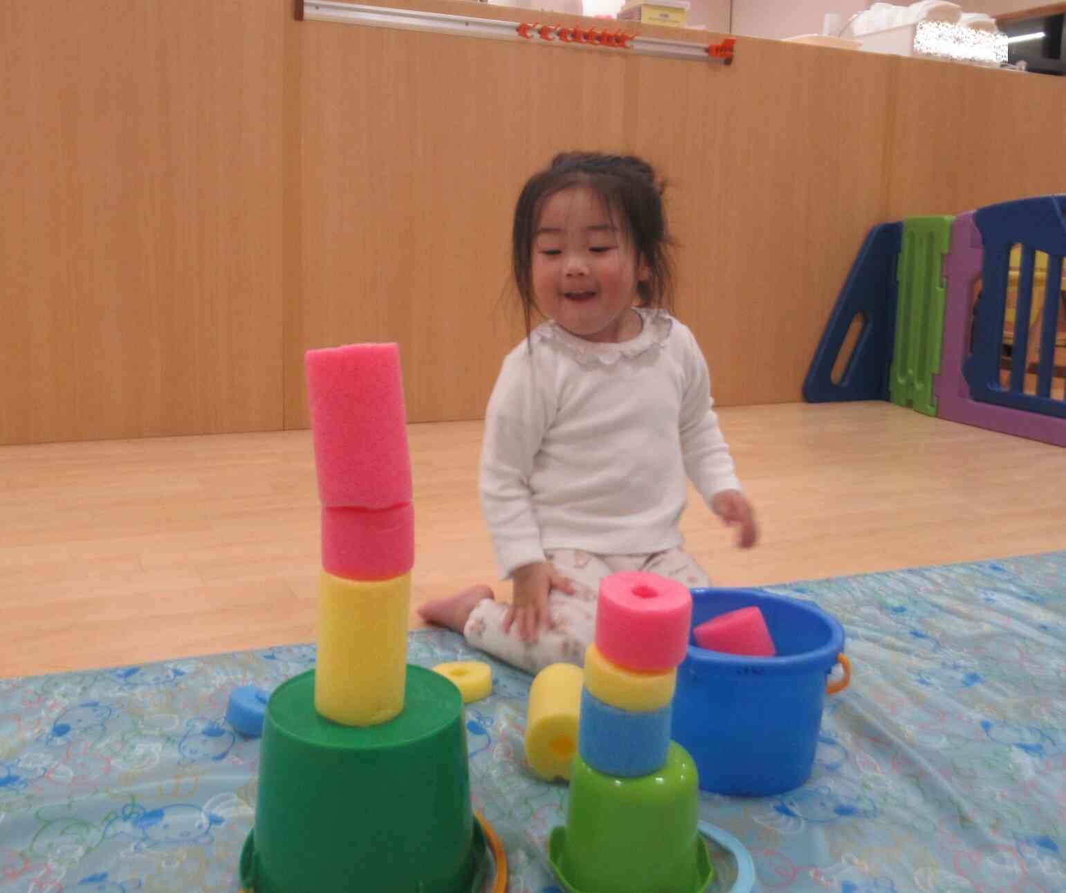 また一つ積むことができると喜びのこの表情をする女の子でした。
