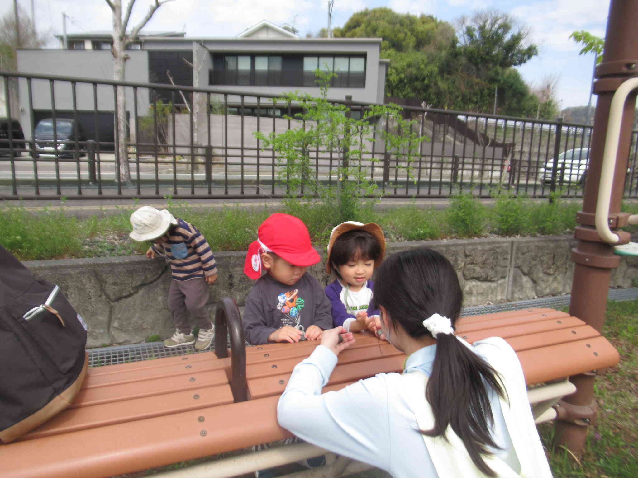 子どもたちに行きたいところをきいてみると、みんな揃って「お山の公園!!」と返ってきました。