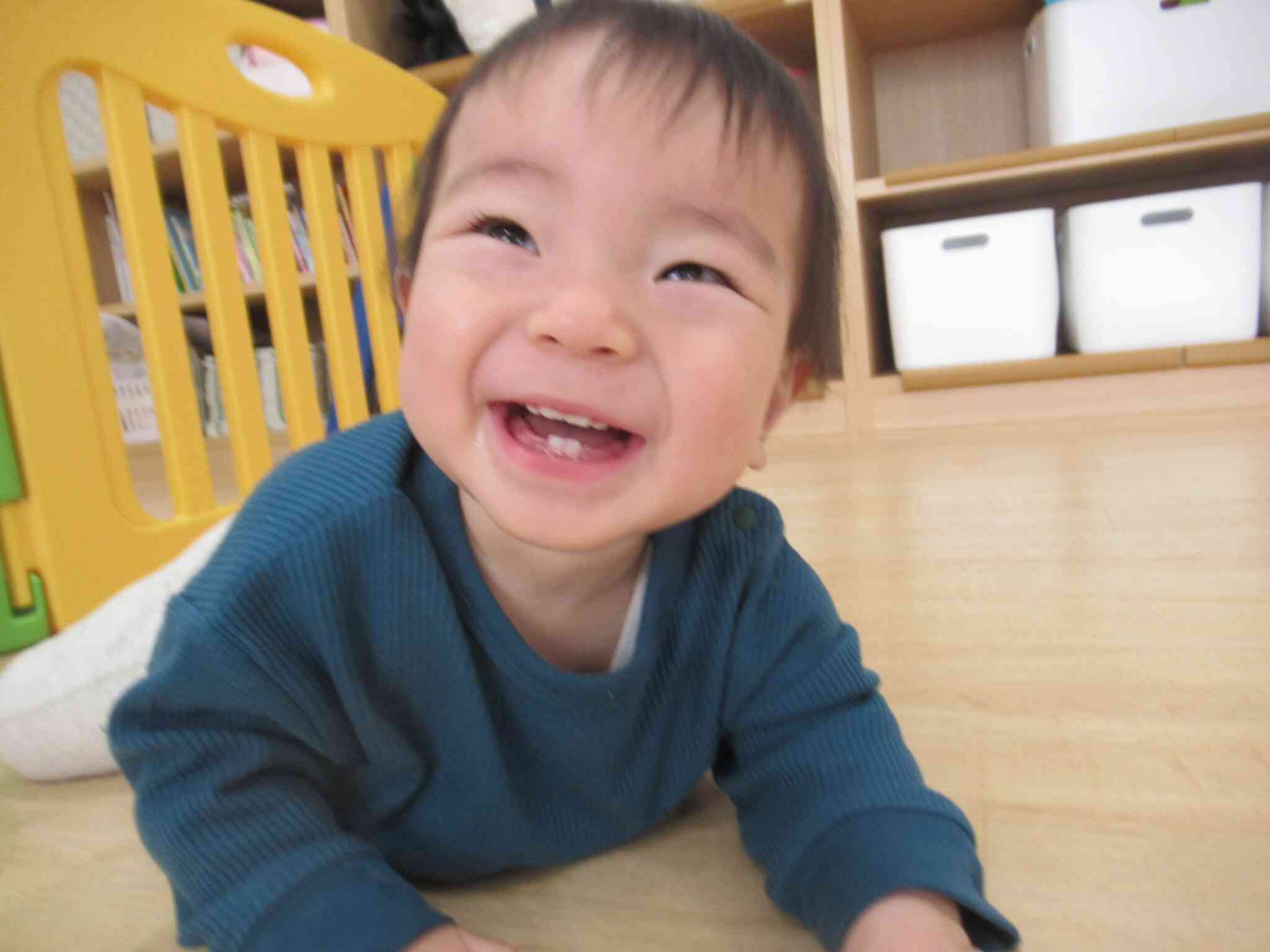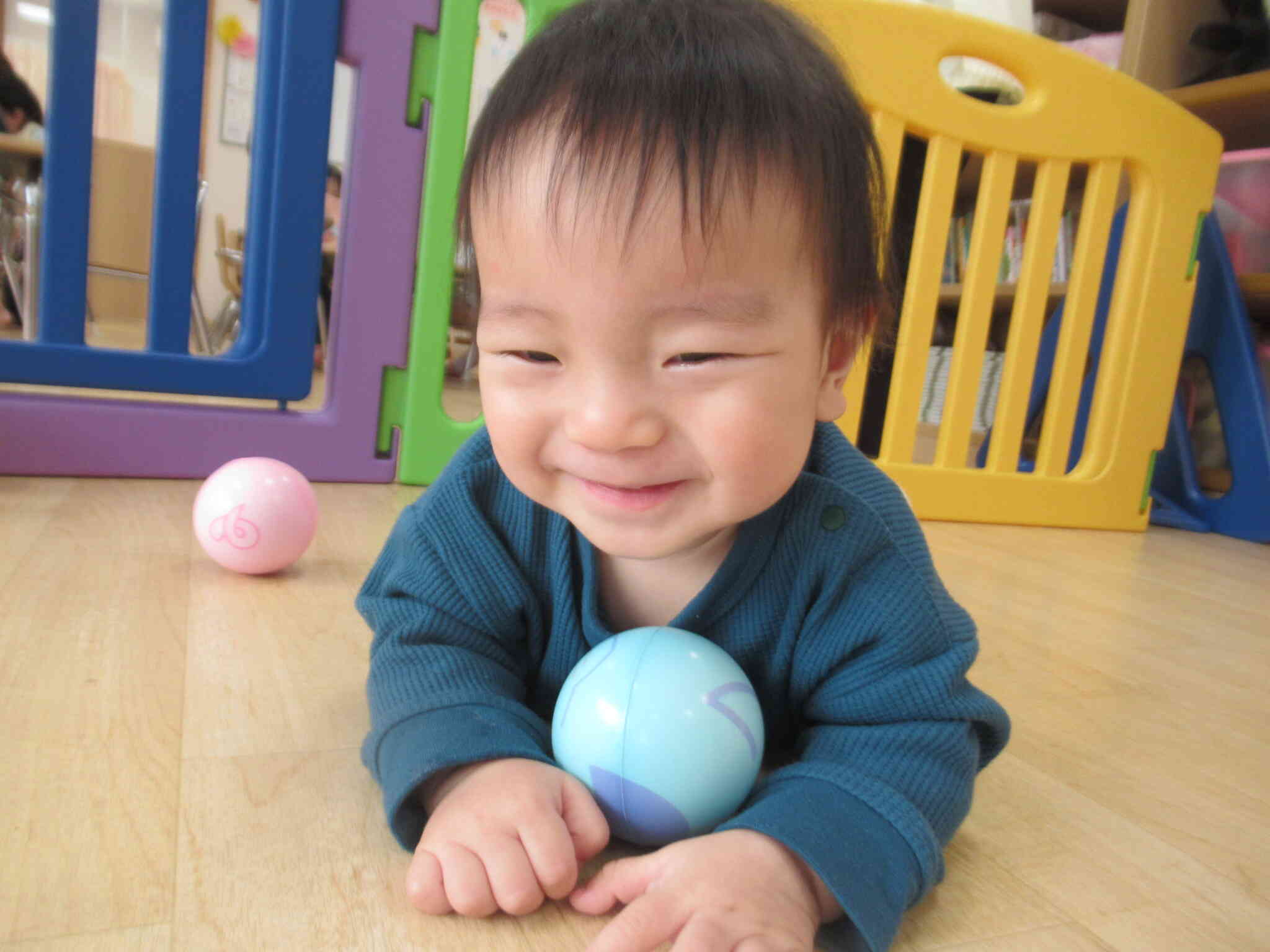 先生がボールを転がすと転がっていくボールを見て、声をだして笑っていました。