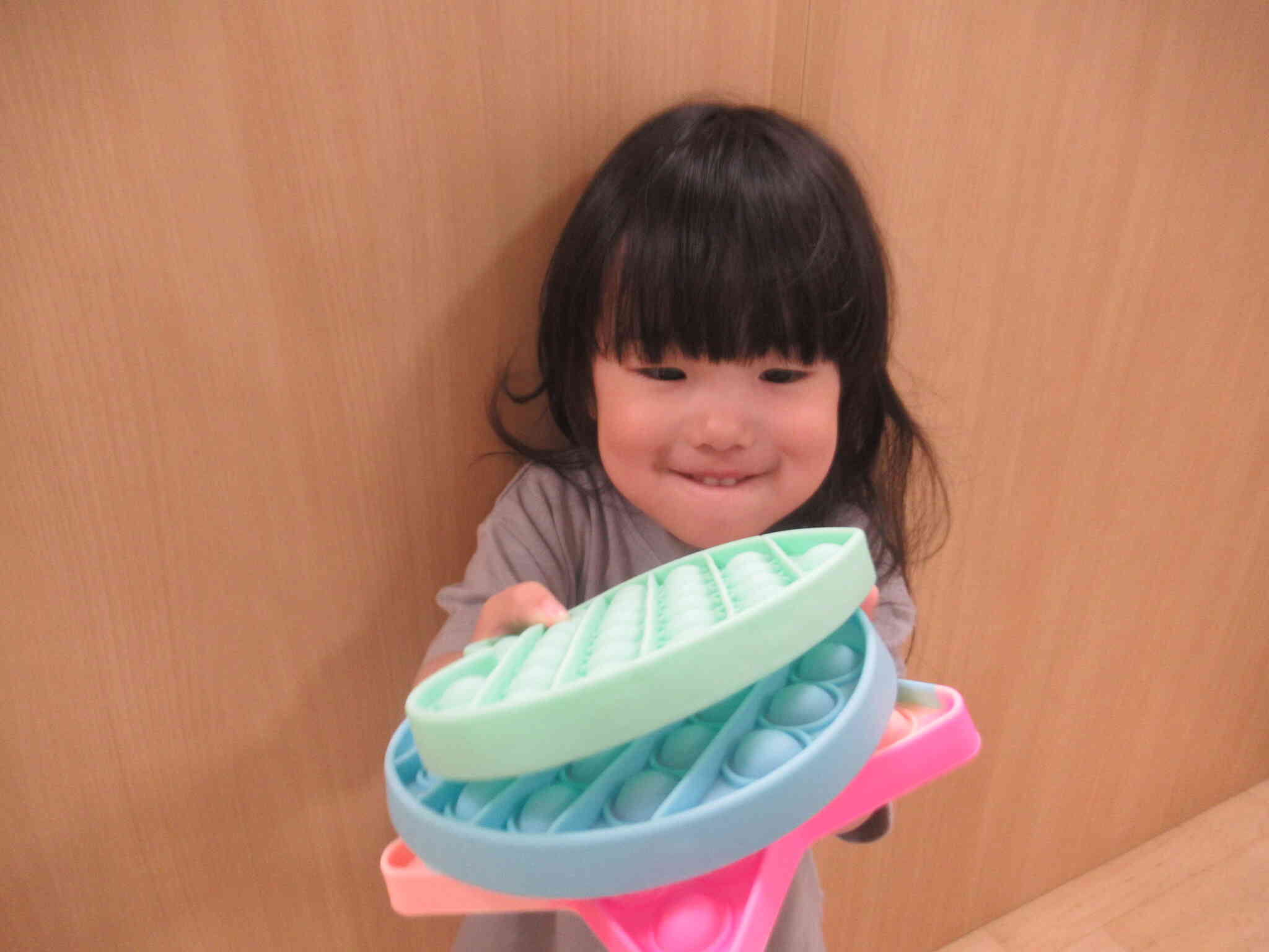 プッシュポップを3枚重ねて、「ハンバーガーでーす!」と持ってきてくれました。
