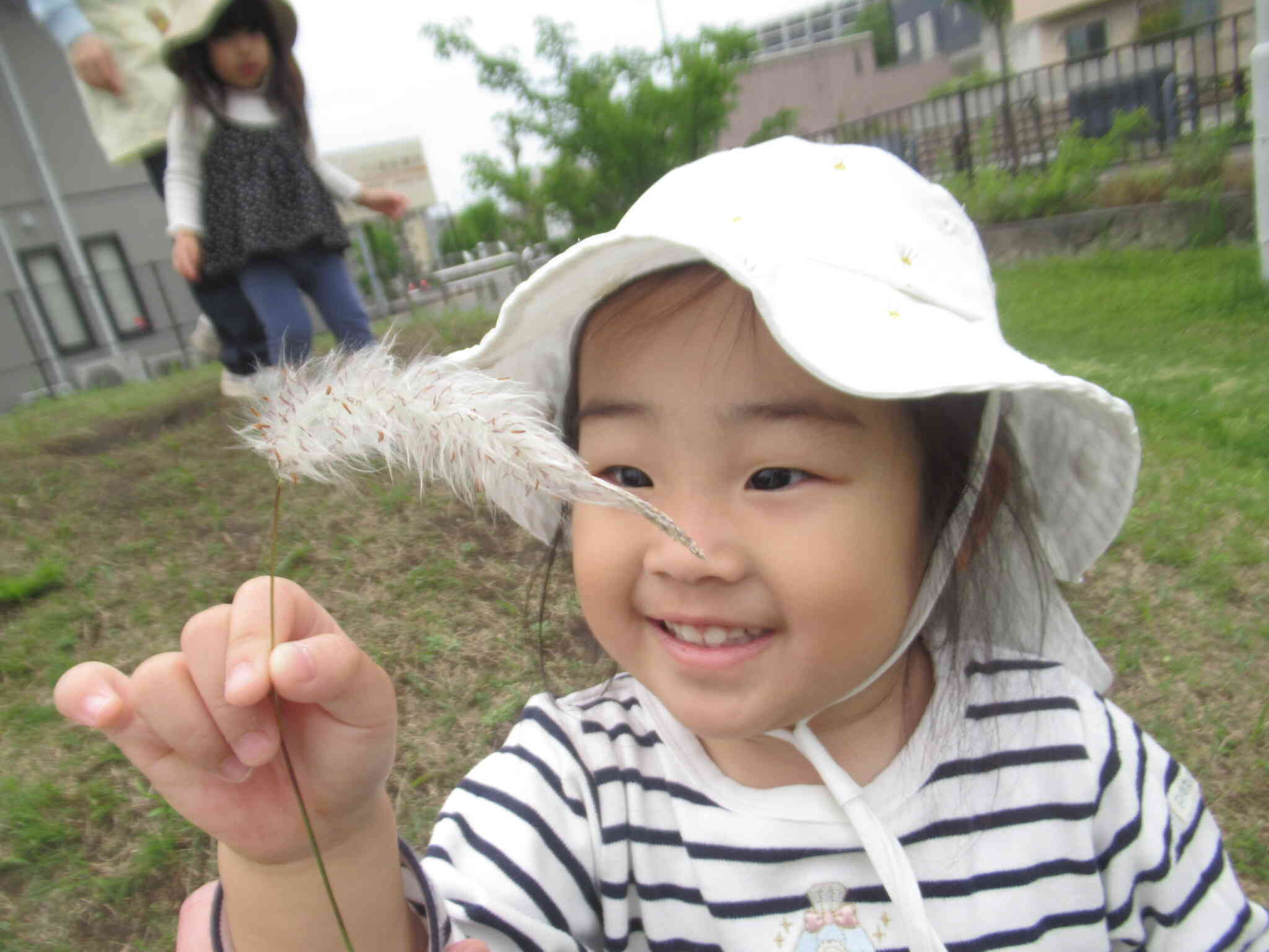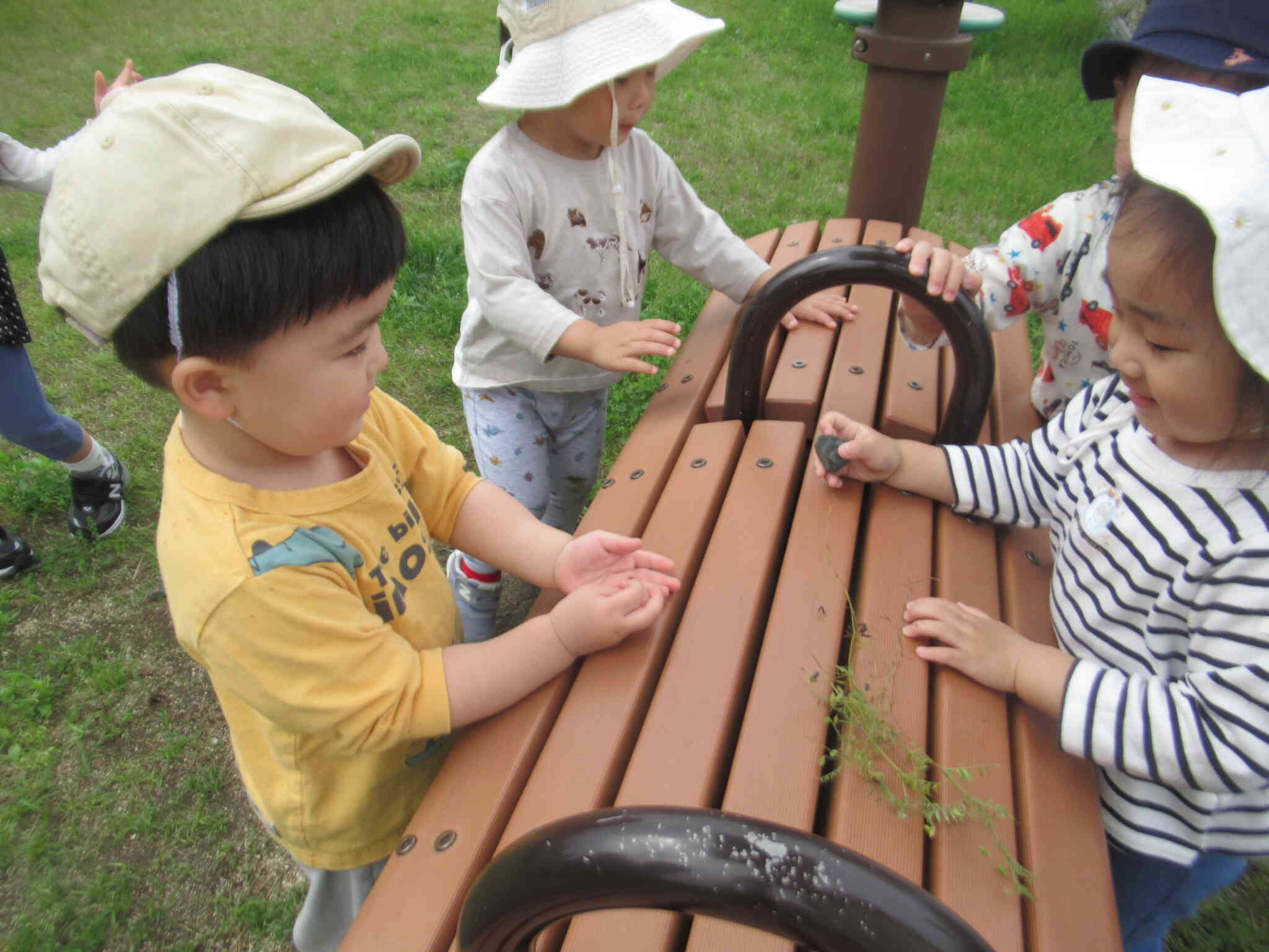 自分で木の実をとりたかったようで先生に抱っこをしてもらい自分でとってみました。