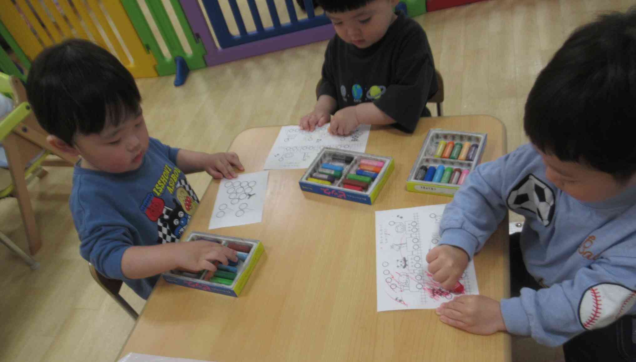男の子は白い画用紙を塗り残しがないように満遍なく塗っていました。