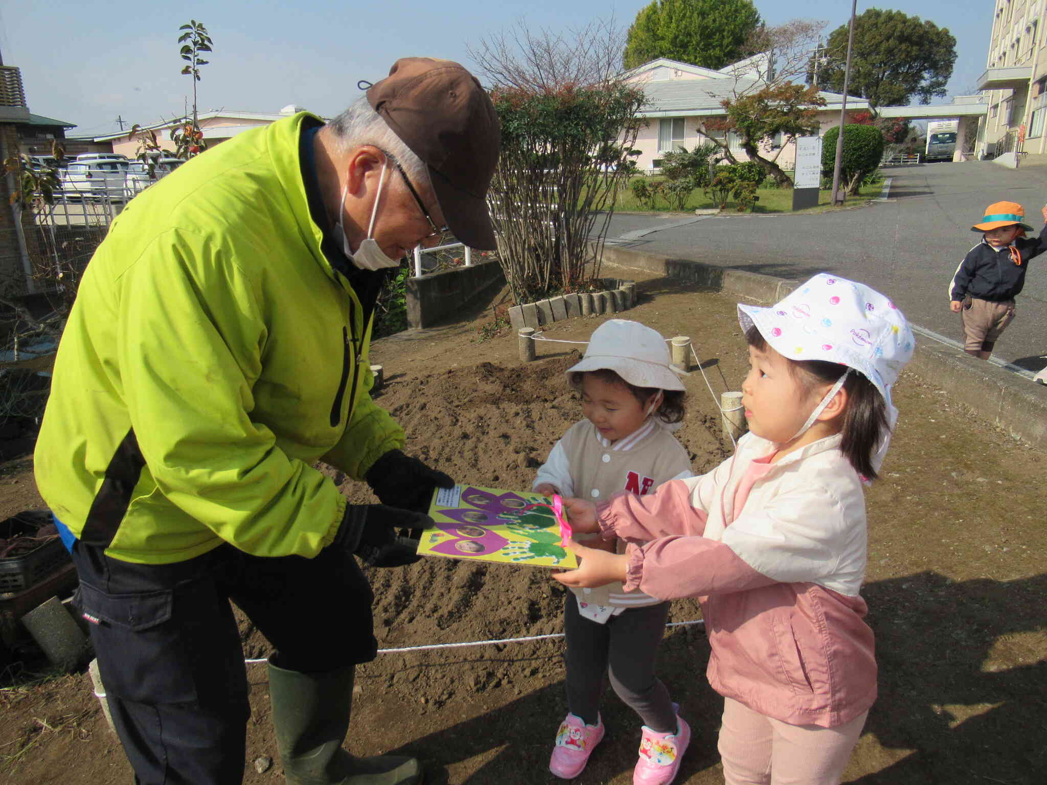 さすが2歳児さん、しっかり「ありがとうございます。」と伝えることができ、職員の方々にも喜んでいただきましたよ。