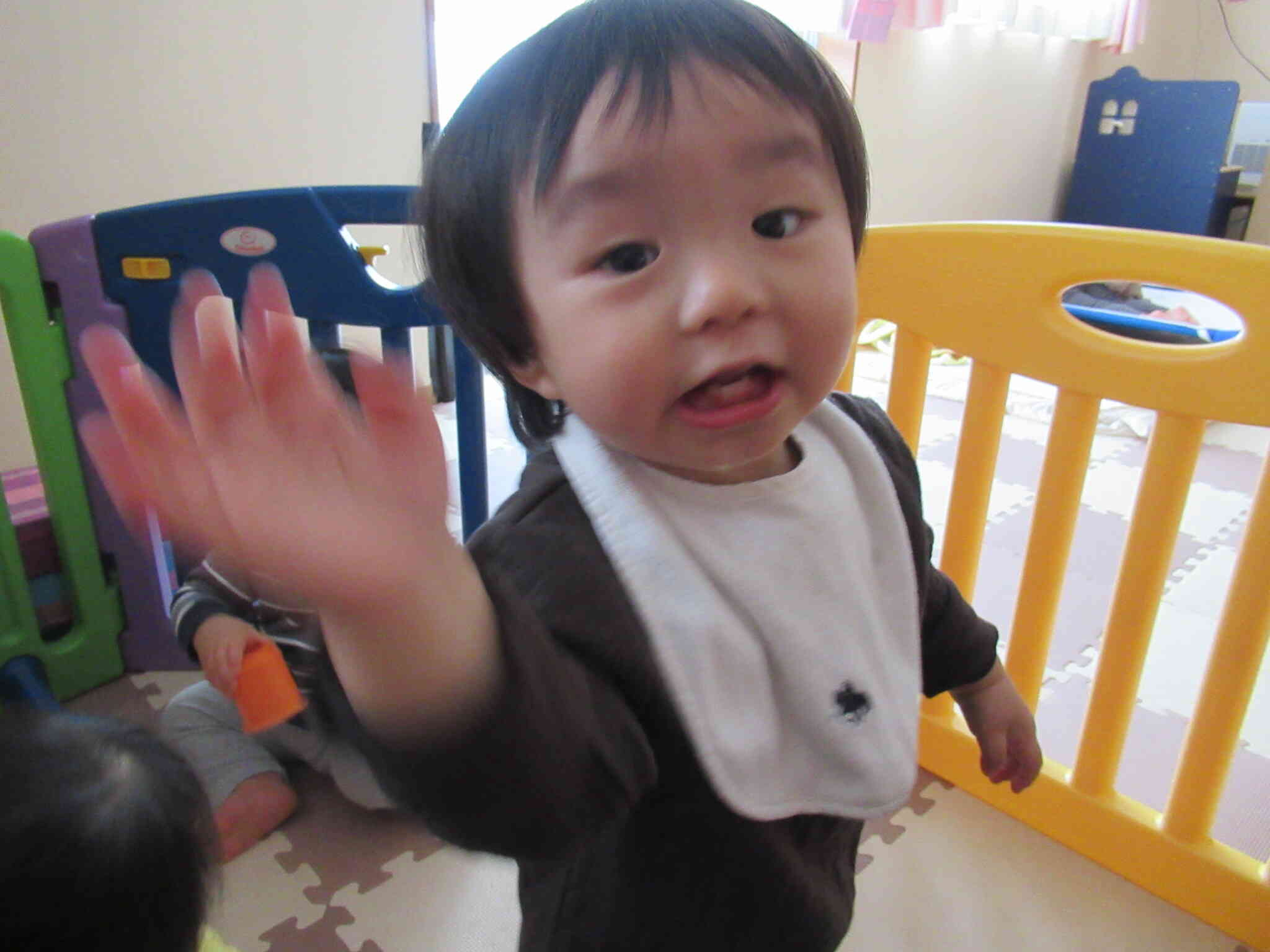 とても仲の良い0歳児さん。