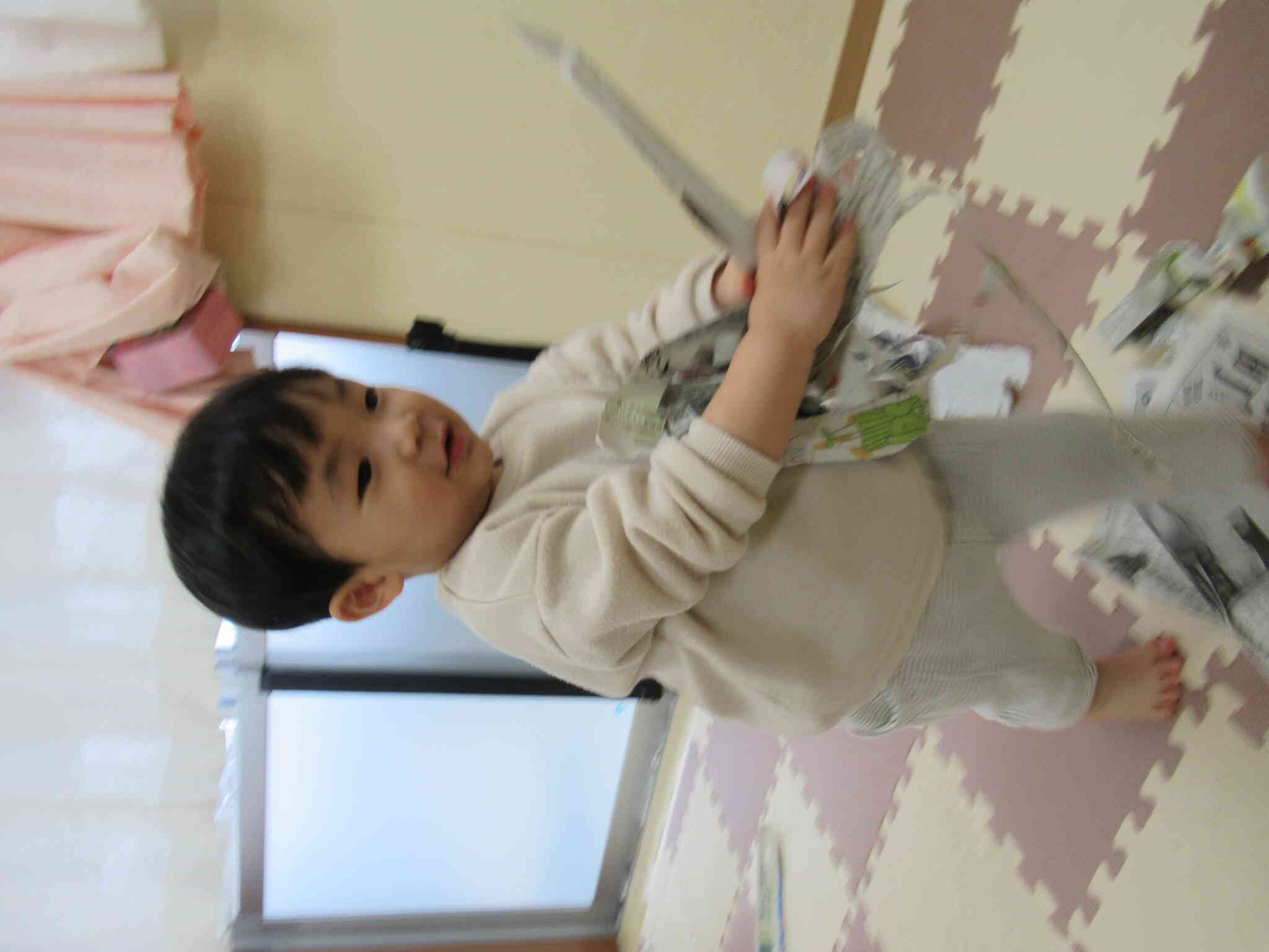 新聞紙あそびをしました。
