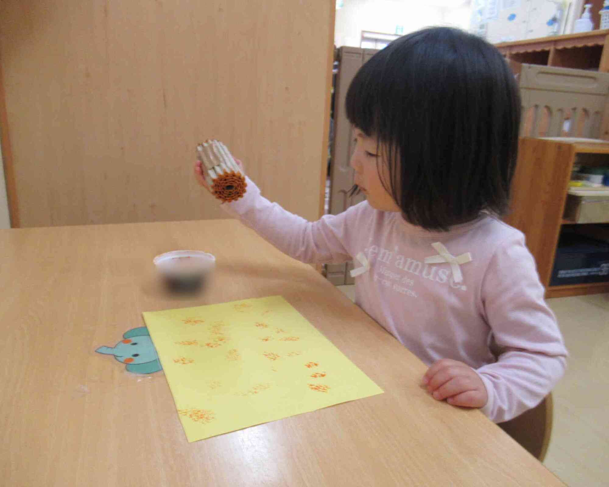 押し方が0・1歳児さんより力強く、はっきりとした形が付きましたよ!