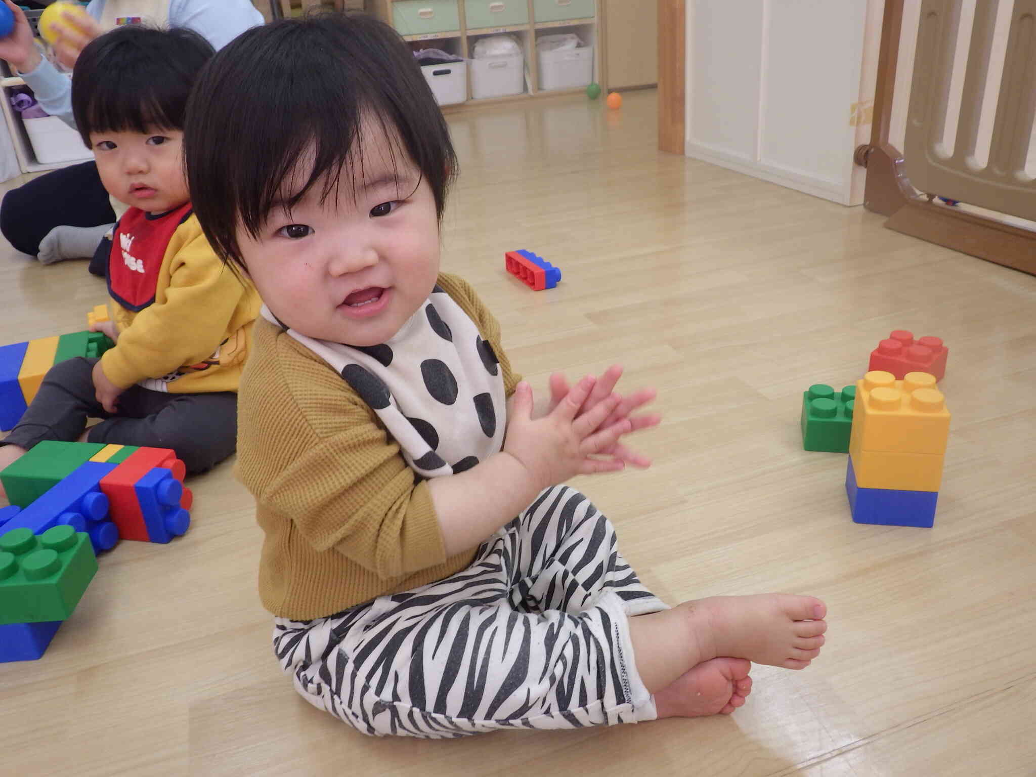 ひよこさん大きなブロックで遊んでいますね~。
