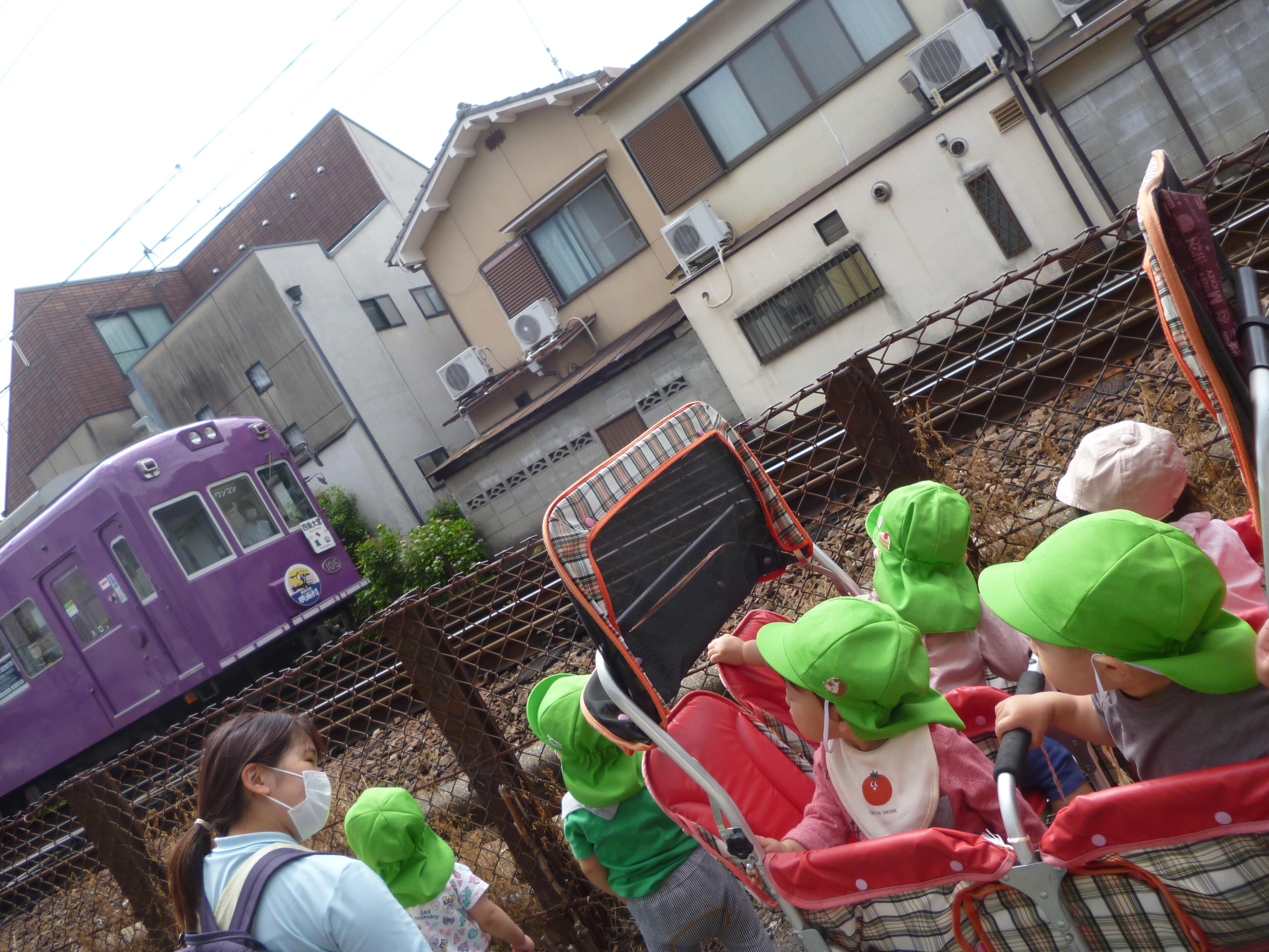 子どもたちは、毎日お外遊びに出かけます。公園をはじめ神社への参拝、お花見や紅葉狩りなどお散歩中も植物や自然に触れることができ、日々京都ならではの四季を体感しています。