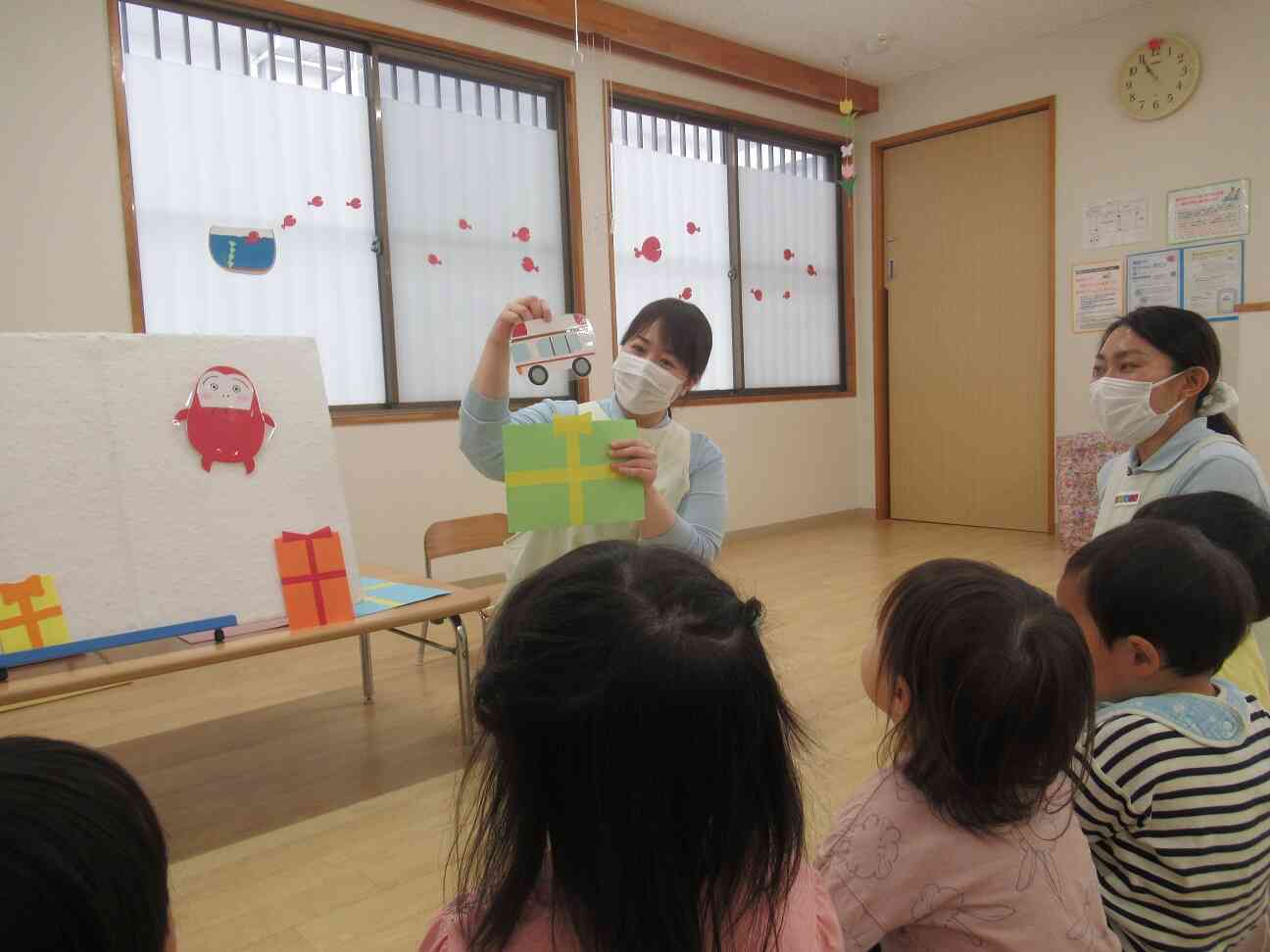 4月は二人のお友だちのお誕生日でした。みんなにお祝いしてもらって嬉しそうにする姿がとても可愛い二人でしたよ。もらったお誕生日カードをみんなにも見せてくれました。お家の人にも教えてあげると嬉しそうにお話してくれましたよ。