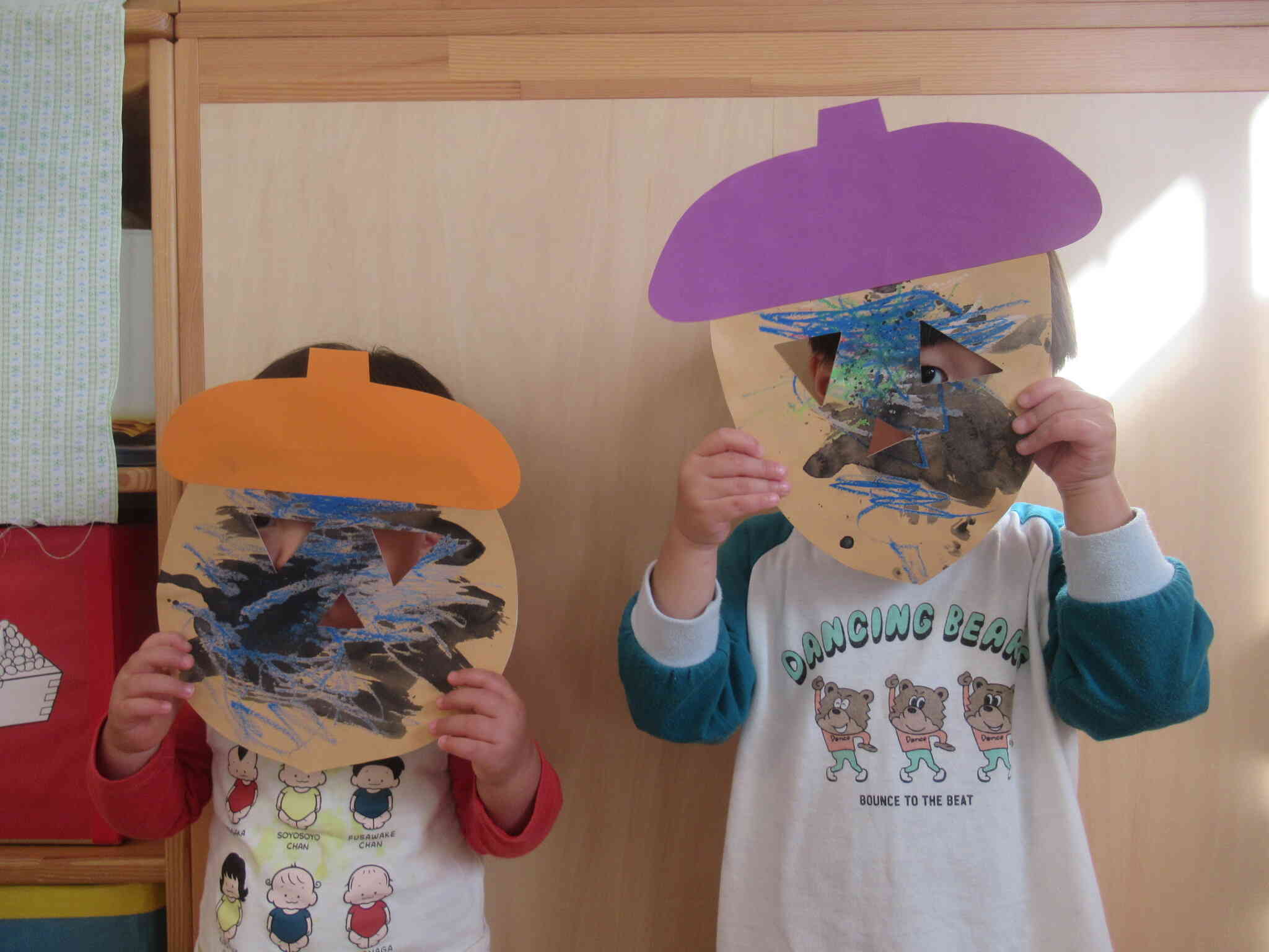 あひる組では「どんぐりおばけ」のお面を作ってみました!