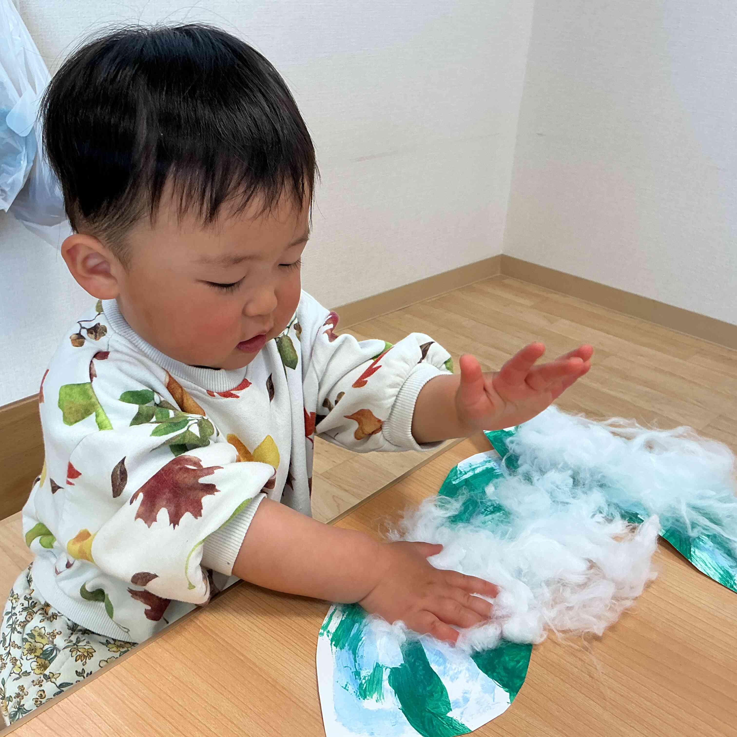 絵の具で色塗りをしたら、綿を乗せてふかふかなベッドにします!