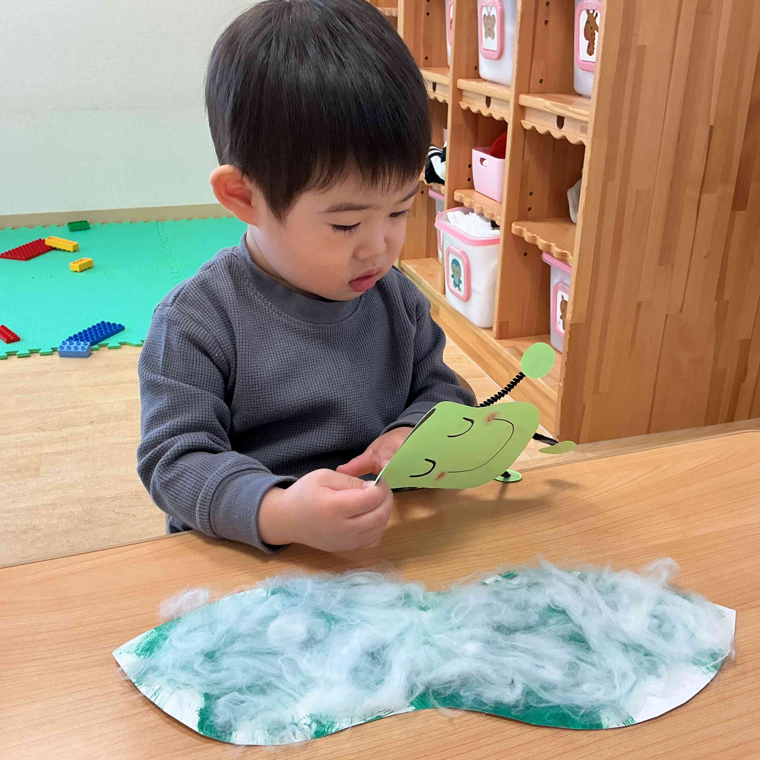完成したら、そらまめくんとグリンピースくんにベッドをプレゼント