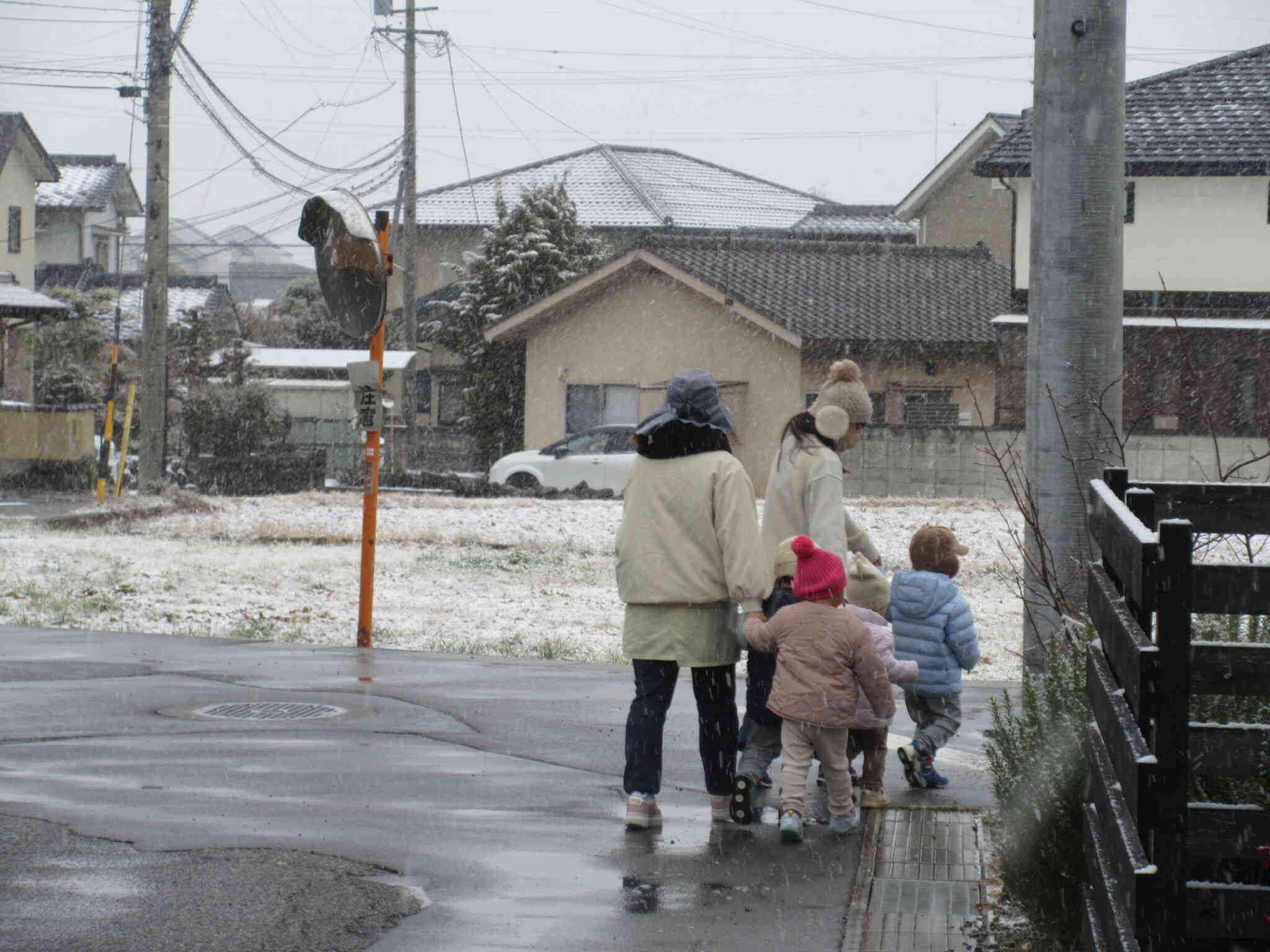 保育園の敷地内からほんの少しの所まででしたが