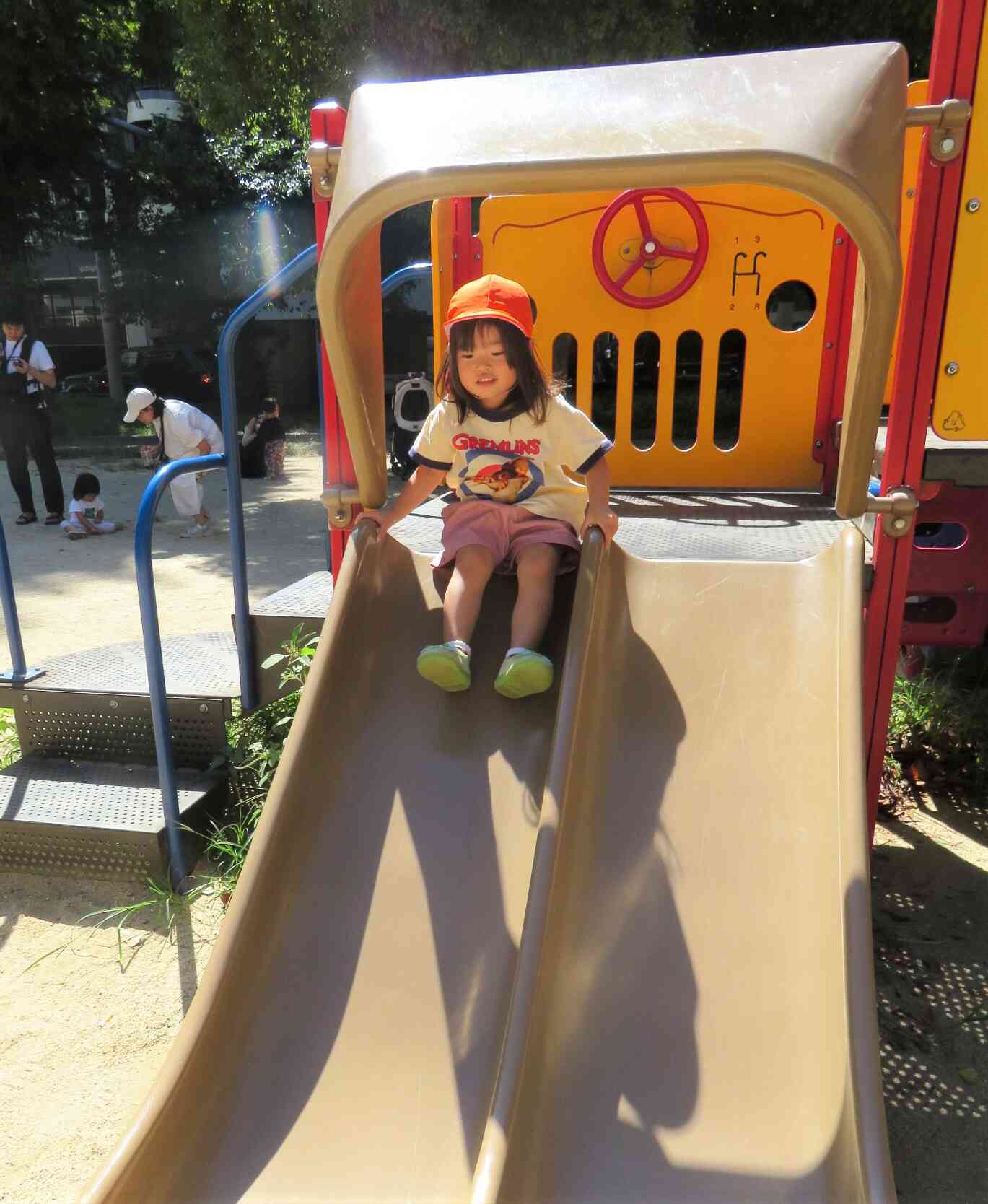 滑り台へ、一直線に向かっていきました♪