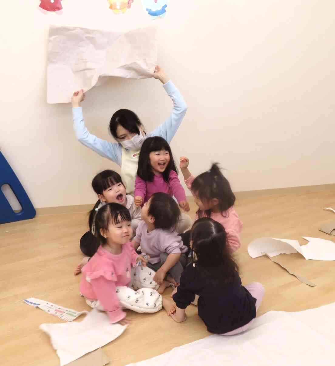真似っこして新聞紙遊びがスタートです!